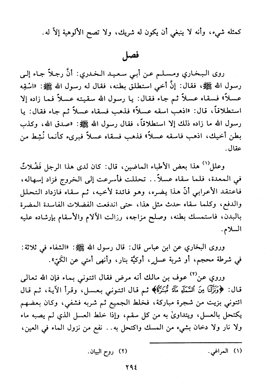 وعلل (¬1) هذا بعض الأطباء الماضين، قال: كان لدى هذا الرجل فَضُلاتٌ في المعدة، فلما سقاه عسلًا .. تحللت فأسرعت إلى الخروج فزاد إسهاله، فاعتقد الأعرابي أنّ هذا يضره، وهو فائدة لأخيه، ثم سقاه فازداد التحلل والدفع، وكلما سقاه حدث مثل هذا، حتى اندفعت الفضلات الفاسدة المضرة بالبدن، فاستمسك بطنه، وصلح مزاجه، وزالت الآلام والأسقام بإرشاده عليه السلام.