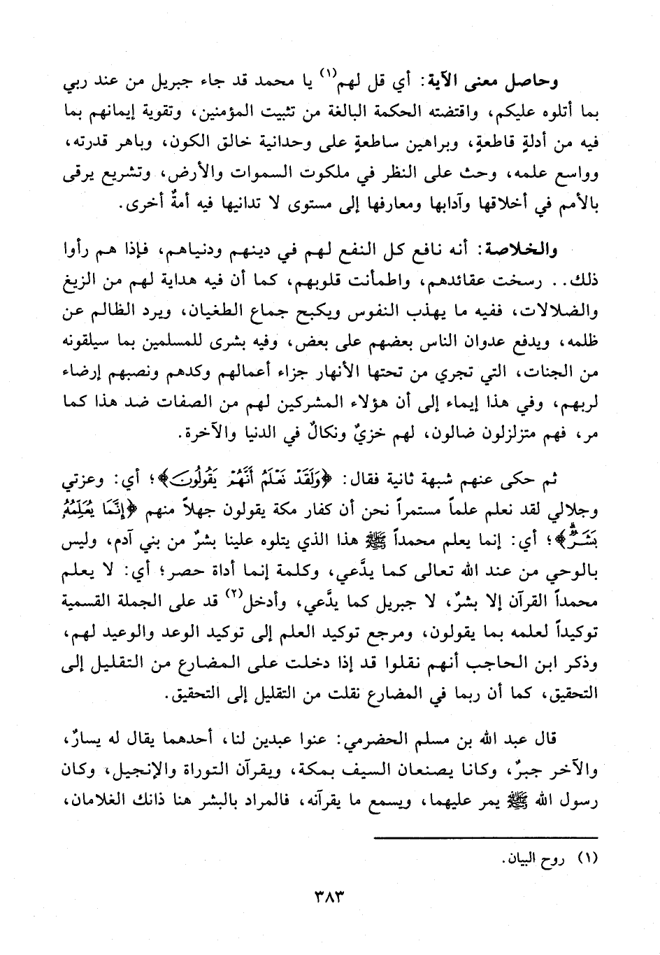 قال عبد الله بن مسلم الحضرمي: عنوا عبدين لنا، أحدهما يقال له يسارٌ، والآخر جبرٌ، وكانا يصنعان السيف بمكة، ويقرآن التوراة والإنجيل، وكان رسول الله - صلى الله عليه وسلم - يمر عليهما، ويسمع ما يقرآنه، فالمراد بالبشر هنا ذانك الغلامان،