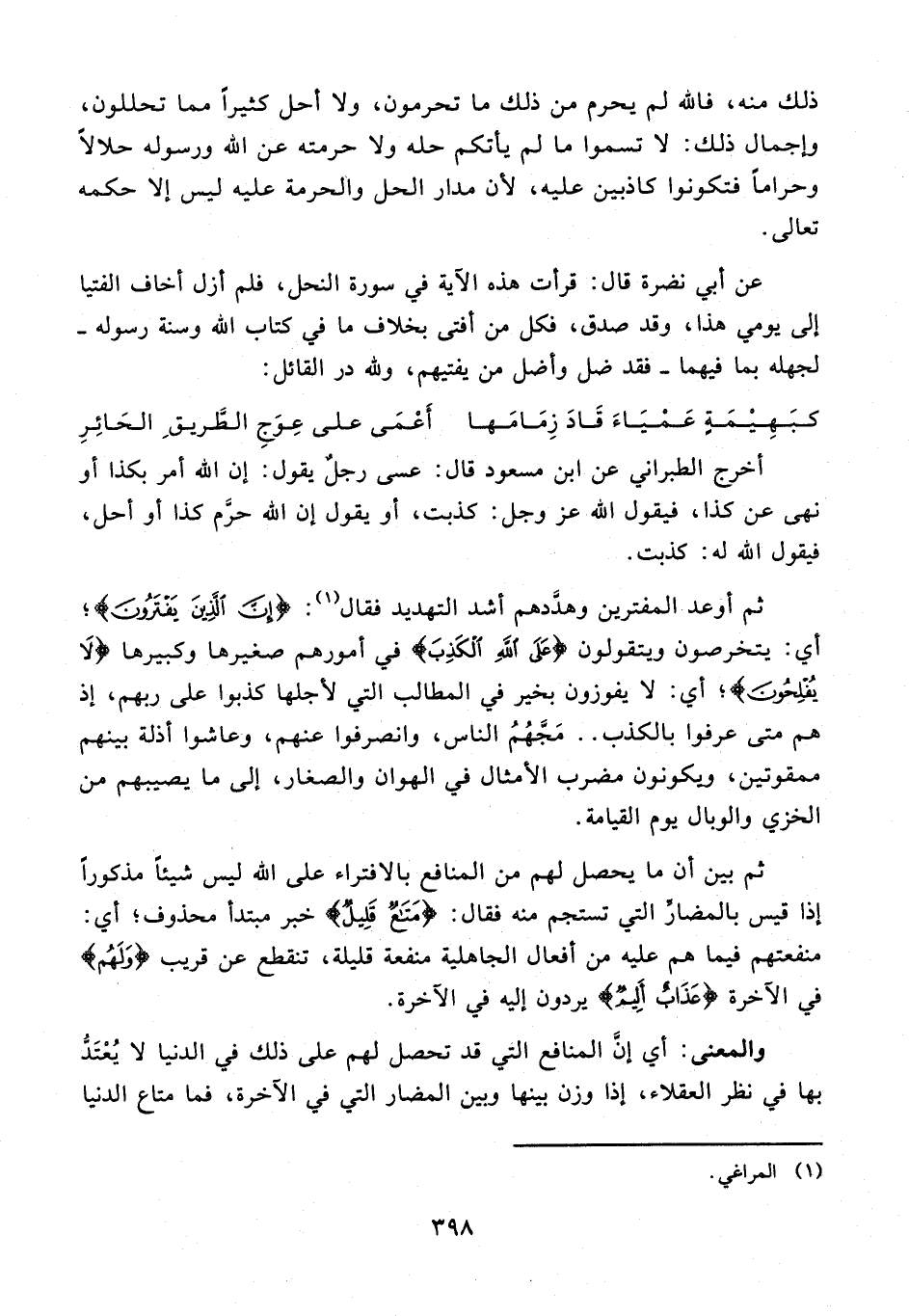 عن أبي نضرة قال: قرأت هذه الآية في سورة النحل، فلم أزل أخاف الفتيا إلى يومي هذا، وقد صدق، فكل من أفتى بخلاف ما في كتاب الله وسنة رسوله - لجهله بما فيهما - فقد ضل وأضل من يفتيهم، ولله در القائل: