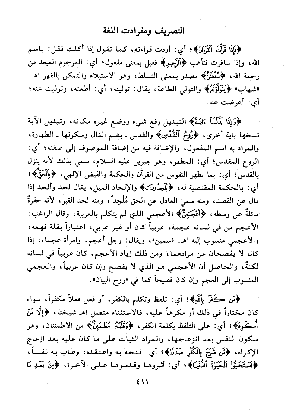 {وَإِذَا بَدَّلْنَا آيَةً} التبديل رفع شيء ووضع غيره مكانه، وتبديل الآية نسخها بآية أخرى، {رُوحُ الْقُدُسِ} والقدس - بضم الدال وسكونها - الطهارة، والمراد به اسم المفعول، والإضافة فيه من إضافة الموصوف إلى صفته؛ أي: الروح المقدس؛ أي: المطهر، وهو جبريل عليه السلام، سمي بذلك لأنه ينزل بالقدس؛ أي: بما يطهر النفوس من القرآن والحكمة والفيض الإلهي، {بِالْحَقِّ}؛ أي: بالحكمة المقتضية له، {يُلْحِدُونَ} والإلحاد الميل، يقال لحد وألحد إذا مال عن القصد، ومنه سمي العادل عن الحق مُلْحِدًا، ومنه لحد القبر، لأنه حفرةٌ مائلةٌ عن وسطه، {أَعْجَمِيٌّ} الأعجمي الذي لم يتكلم بالعربية، وقال الراغب: الأعجم من في لسانه عجمة، عربيًّا كان أو غير عربي، اعتبارًا بقلة فهمه، والأعجمي منسوب إليه اهـ. "سمين"، ويقال: رجل أعجم، وامرأة عجماء، إذا كانا لا يفصحان عن مرادهما، ومن ذلك زياد الأعجم، كان عربيًّا في لسانه لكنةٌ، والحاصل أن الأعجمي هو الذي لا يفصح وإن كان عربيًّا، والعجمي المنسوب إلى العجم وإن كان فصيحًا كما في "روح البيان".