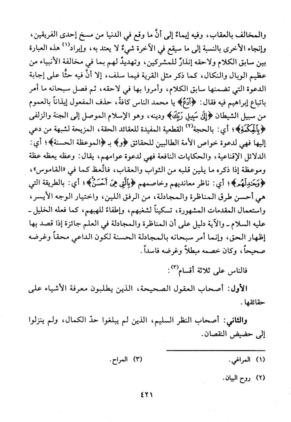 والثاني: أصحاب النظر السليم، الذين لم يبلغوا حدّ الكمال، ولم ينزلوا إلى حضيض النقصان.