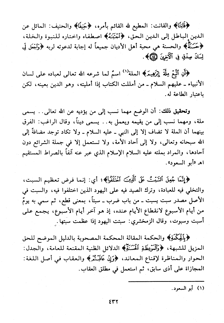 {أَنِ اتَّبِعْ مِلَّةَ إِبْرَاهِيمَ} الملة (¬1) اسمٌ لما شرعه الله تعالى لعباده على لسان الأنبياء - عليهم السلام - من أمللت الكتاب إذا أمليته، وهو الدين بعينه، لكن باعتبار الطاعة له.