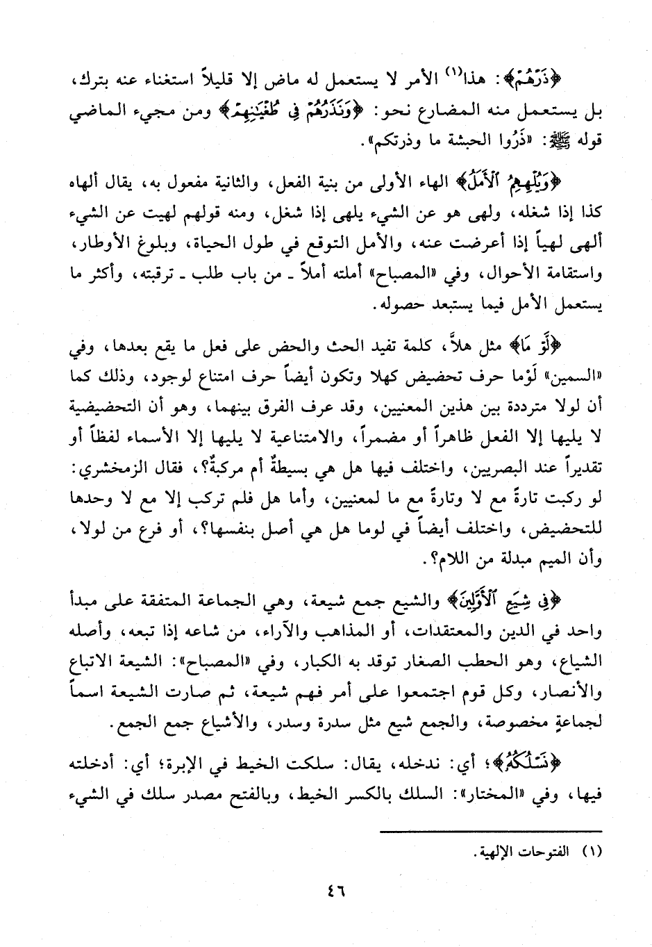 {وَيُلْهِهِمُ الْأَمَلُ} الهاء الأولى من بنية الفعل، والثانية مفعول به، يقال ألهاه كذا إذا شغله، ولهى هو عن الشيء يلهى إذا شغل، ومنه قولهم لهيت عن الشيء ألهى لهيًا إذا أعرضت عنه، والأمل التوقع في طول الحياة، وبلوغ الأوطار، واستقامة الأحوال، وفي" المصباح" أملته أملًا - من باب طلب - ترقبته، وأكثر ما يستعمل الأمل فيما يستبعد حصوله.