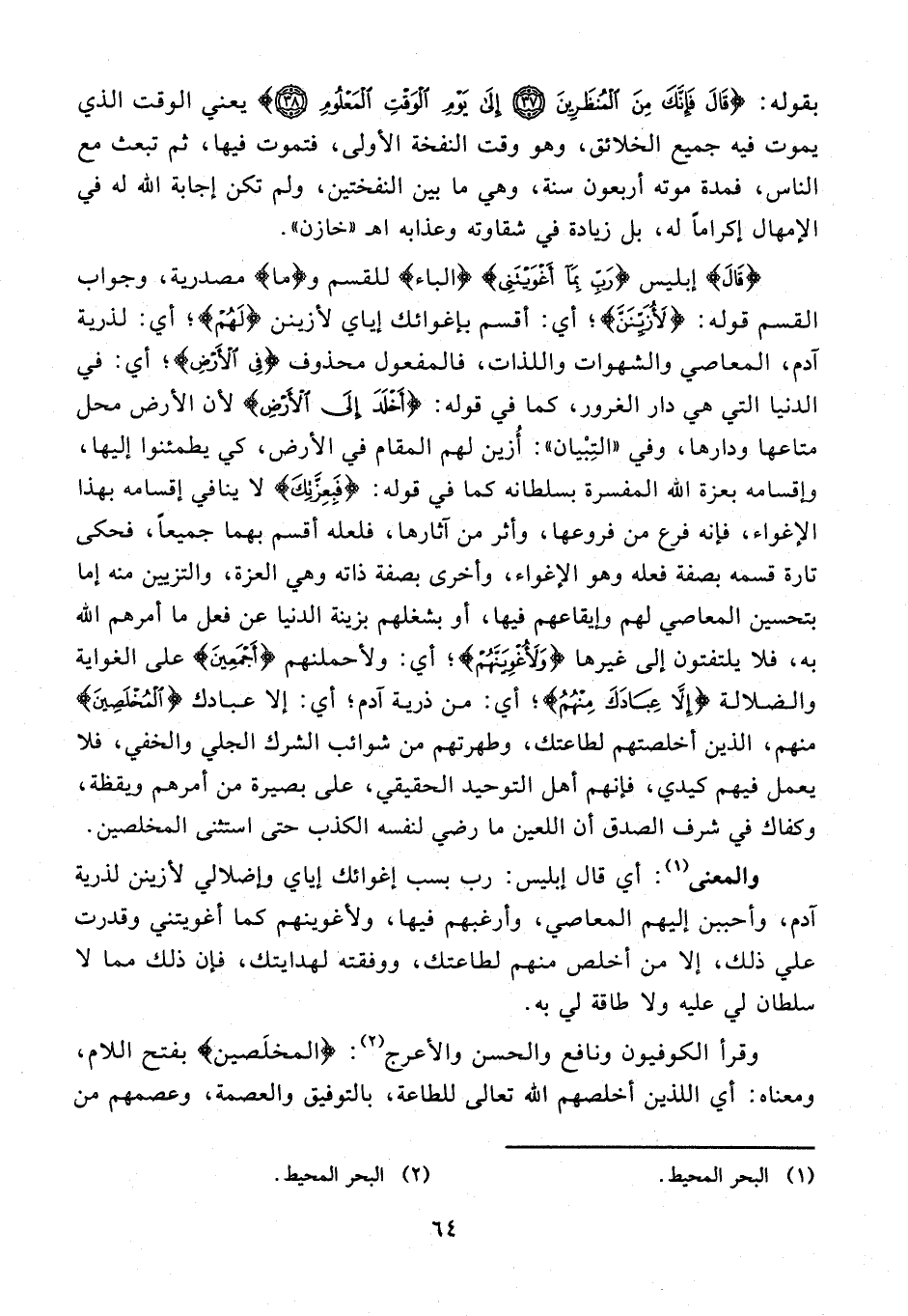 وقرأ الكوفيون ونافع والحسن والأعرج (¬2): {المخلَصين} بفتح اللام، ومعناه: أي اللذين أخلصهم الله تعالى للطاعة، بالتوفيق والعصمة، وعصمهم من