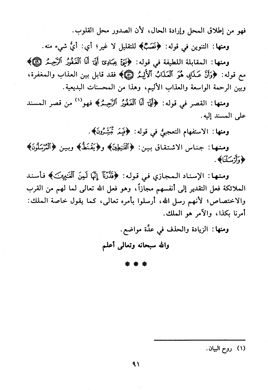 ومنها: القصر في قوله: {أَنِّي أَنَا الْغَفُورُ الرَّحِيمُ} فهو (¬1) من قصر المسند على المسند إليه.