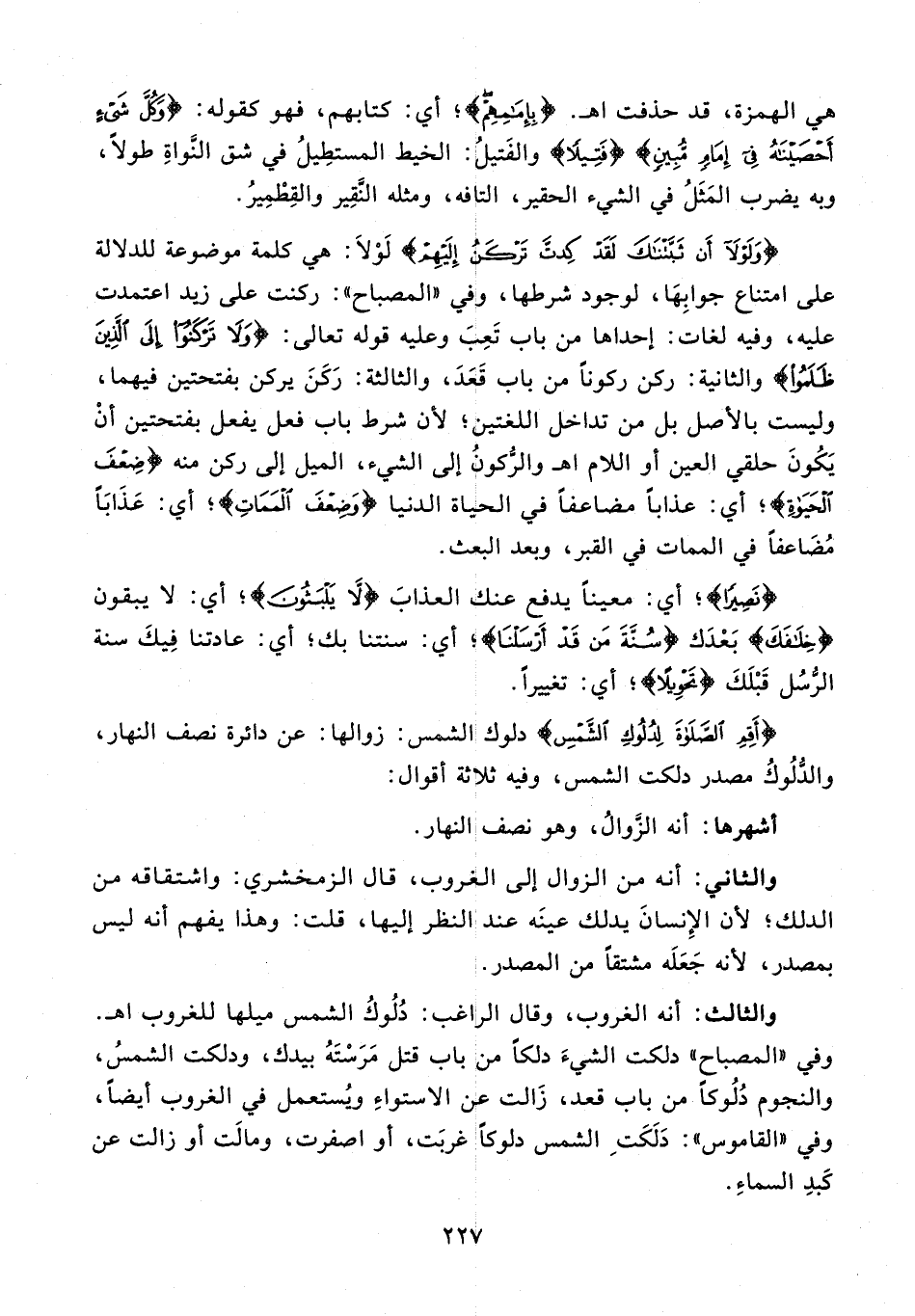 {أَقِمِ الصَّلاةَ لِدُلُوكِ الشَّمْسِ} دلوك الشمس: زوالها: عن دائرة نصف النهار، والدُّلوك مصدر دلكت الشمس، وفيه ثلاثة أقوال: