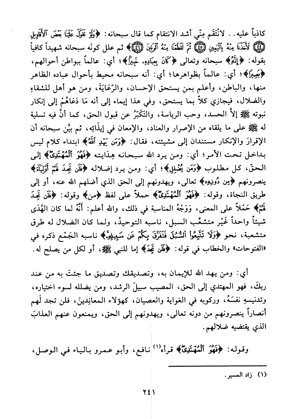 وقوله: {فَهُوَ الْمُهْتَدِي} قرأه (¬1) نافع، وأبو عمرو بالياء في الوصل،