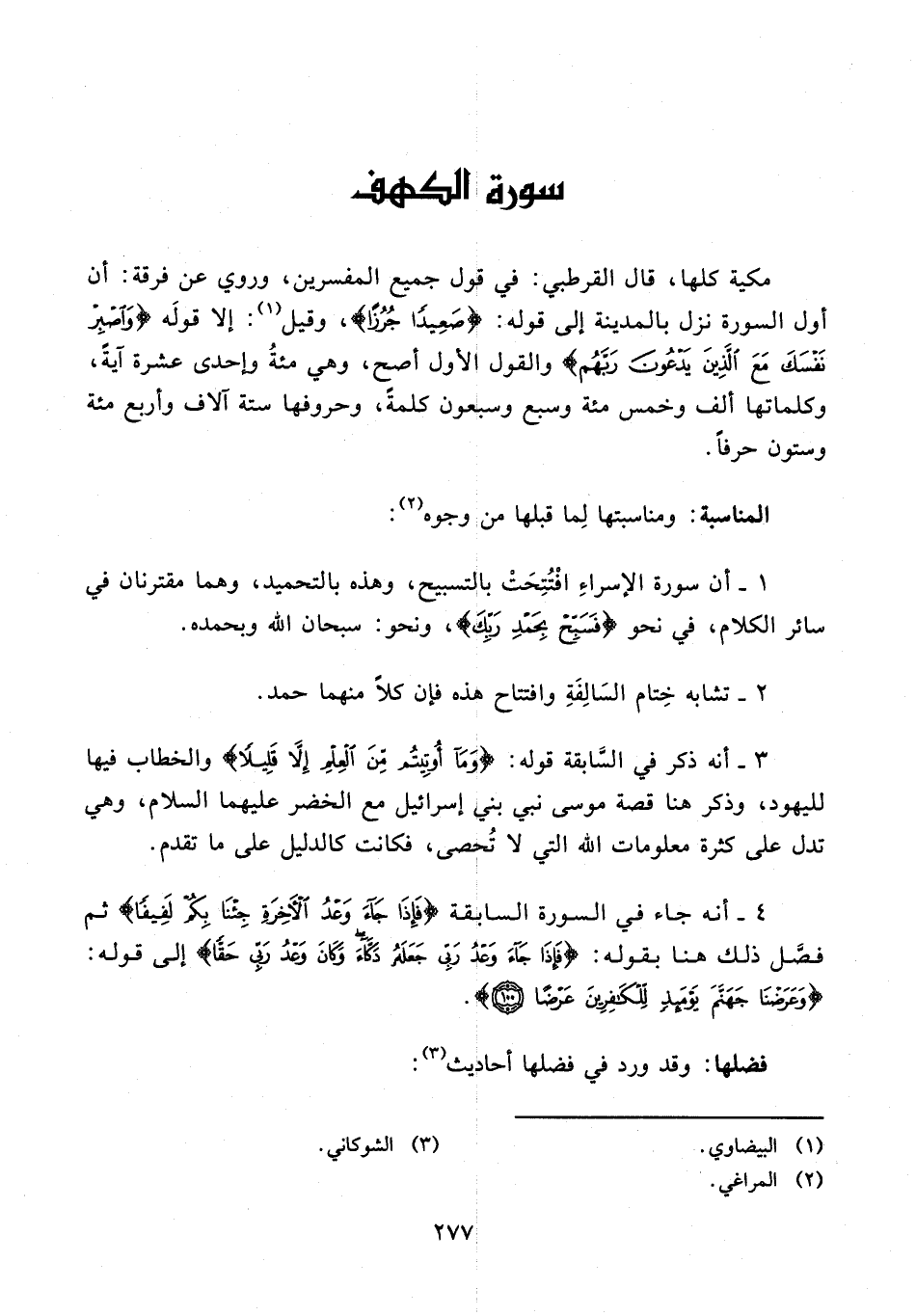 مكية كلها، قال القرطبي: في قول جميع المفسرين، وروي عن فرقة: أن أول السورة نزل بالمدينة إلى قوله: {صَعِيدًا جُرُزًا}، وقيل (¬1): إلا قوله {وَاصْبِرْ نَفْسَكَ مَعَ الَّذِينَ يَدْعُونَ رَبَّهُمْ} والقول الأول أصح، وهي مئة وإحدى عشرة آيةً، وكلماتها ألف وخمس مئة وسبع وسبعون كلمةً، وحروفها ستة آلاف وأربع مئة وستون حرفًا.