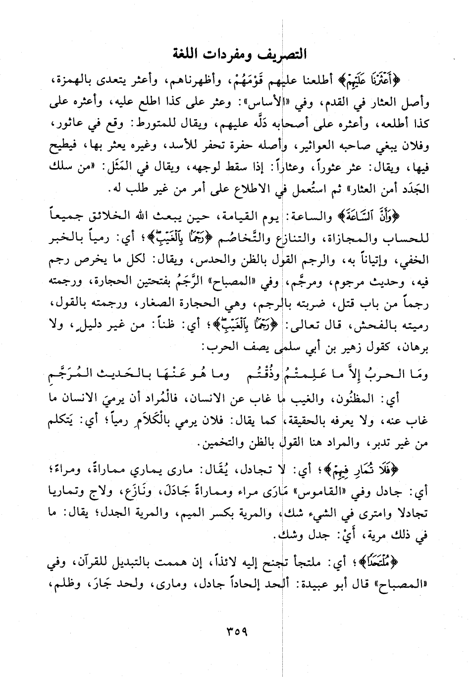 {وَأَنَّ السَّاعَةَ} والساعة: يوم القيامة، حين يبعث الله الخلائق جميعًا للحساب والمجازاة، والتنازع والتّخاصم {رَجْمًا بِالْغَيْبِ}؛ أي: رميًا بالخبر الخفي، وإتيانًا به، والرجم القول بالظن والحدس، ويقال: لكل ما يخرص رجم فيه، وحديث مرجوم، ومرجّم، وفي «المصباح» الرّجم بفتحتين الحجارة، ورجمته رجما من باب قتل، ضربته بالرجم، وهي الحجارة الصغار، ورجمته بالقول، رميته بالفحش، قال تعالى: {رَجْمًا بِالْغَيْبِ}؛ أي: ظنًا: من غير دليلٍ، ولا برهان، كقول زهير بن أبي سلمى يصف الحرب: