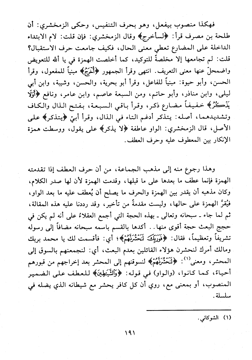 68 - ثم لما جاء - سبحانه وتعالى - بهذه الحجة التي أجمع العقلاءُ على أنه لم يكن في حجج البعث حجة أقوى منها .. أكدها بالقسم باسمه سبحانه مضافًا إلى رسوله تشريفًا وتعظيمًا، فقال: {فَوَرَبِّكَ لَنَحْشُرَنَّهُمْ}؛ أي: فأقسمت لك يا محمد بربك ومالك أمرك لنحشرن هؤلاء القائلين بعدم البعث، أي: لنجمعنهم بالسوق إلى المحشر، ومعنى (¬1): {لَنَحْشُرَنَّهُمْ} لنسوقنهم إلى المحشر بعد إخراجهم من قبورهم أحياءً، كما كانوا، (والواو) في قوله: {وَالشَّيَاطِينَ} للعطف على الضمير المنصوب، أو بمعنى مع، روي أن كل كافر يحشر مع شيطانه الذي يضله في سلسلة.