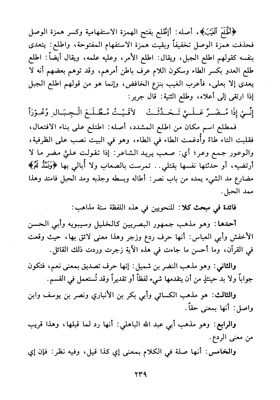 فائدة في مبحث كلا: للنحويين في هذه اللفظة ستة مذاهب: