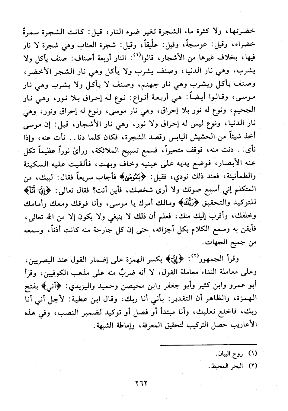 وقرأ الجمهور (¬2): {إِنِّي} بكسر الهمزة على إضمار القول عند البصريين، وعلى معاملة النداء معاملة القول، لا أنه ضربٌ منه على مذهب الكوفيين، وقرأ أبو عمرو وابن كثير وأبو جعفر وابن محيصن وحميد واليزيدي: {أني} بفتح الهمزة، والظاهر أن التقدير: بأني أنا ربك، وقال ابن عطية: لأجل أني أنا ربك، فاخلع نعليك، وأنا مبتدأ أو فصل أو توكيد لضمير النصب، وفي هذه الأعاريب حصل التركيب لتحقيق المعرفة، وإماطة الشبهة.