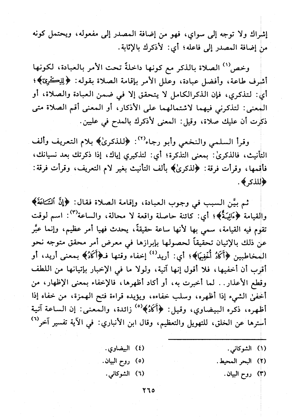 15 - ثم بيَّن السبب في وجوب العبادة، وإقامة الصلاة فقال: {إِنَّ السَّاعَةَ} والقيامة {آتِيَةٌ}؛ أي: كائنة حاصلة واقعة لا محالة، والساعة (¬3): اسم لوقت تقوم فيه القيامة، سمي بها لأنها ساعة حقيقةً، يحدث فيها أمر عظيم، وإنما عبَّر عن ذلك بالإتيان تحقيقاً لحصولها بإبرازها في معرض أمر محقق متوجه نحو المخاطبين {أَكَادُ أُخْفِيهَا}؛ أي: أريد (¬4) إخفاء وقتها فـ {أَكَادُ} بمعنى أريد، أو أقرب أن أخفيها، فلا أقول إنها آتية، ولولا ما في الإخبار بإتيانها من اللطف وقطع الأعذار .. لما أخبرت به، أو أكاد أظهرها، فالإخفاء بمعنى الإظهار، من أخفى الشيء إذا أظهره، وسلب خفاءه، ويؤيده قراءة فتح الهمزة، من خفاه إذا أظهره، ذكره البيضاوي، وقيل: {أَكَادُ} (¬5) زائدة، والمعنى: إن الساعة آتية أسترها عن الخلق، للتهويل والتعظيم، وقال ابن الأنباري: في الآية تفسير آخر (¬6)