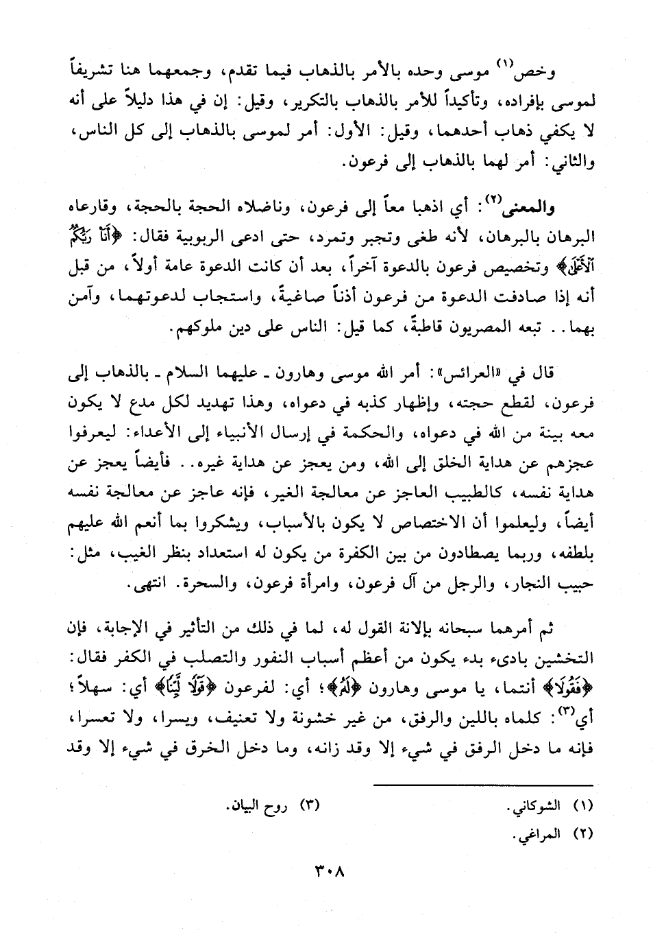 والمعنى (¬2): أي اذهبا معًا إلى فرعون، وناضلاه الحجة بالحجة، وقارعاه البرهان بالبرهان؛ لأنه طغى وتجبر وتمرد، حتى ادعى الربوبية فقال: {أَنَا رَبُّكُمُ الْأَعْلَى} وتخصيص فرعون بالدعوة آخرًا، بعد أن كانت الدعوة عامة أولًا، من قبل أنه إذا صادفت الدعوة من فرعون أذنًا صاغيةً، واستجاب لدعوتهما، وآمن بهما .. تبعه المصريون قاطبةً، كما قيل: الناس على دين ملوكهم.