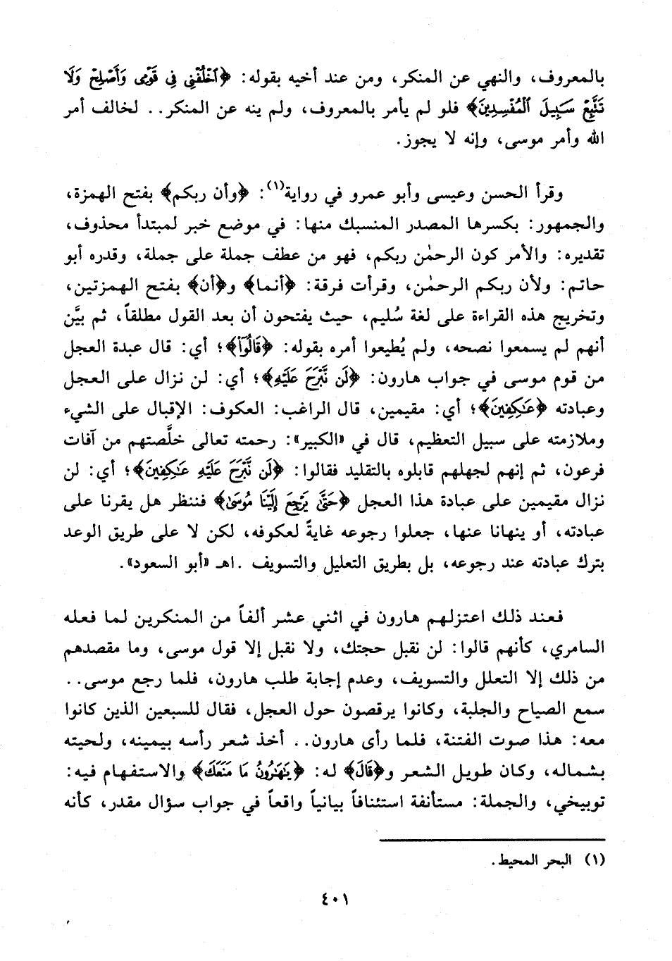 بالمعروف، والنهي عن المنكر، ومن عند أخيه بقوله: {اخْلُفْنِي فِي قَوْمِي وَأَصْلِحْ وَلَا تَتَّبِعْ سَبِيلَ الْمُفْسِدِينَ} فلو لم يأمر بالمعروف، ولم ينه عن المنكر .. لخالف أمر الله وأمر موسى، وإنه لا يجوز.