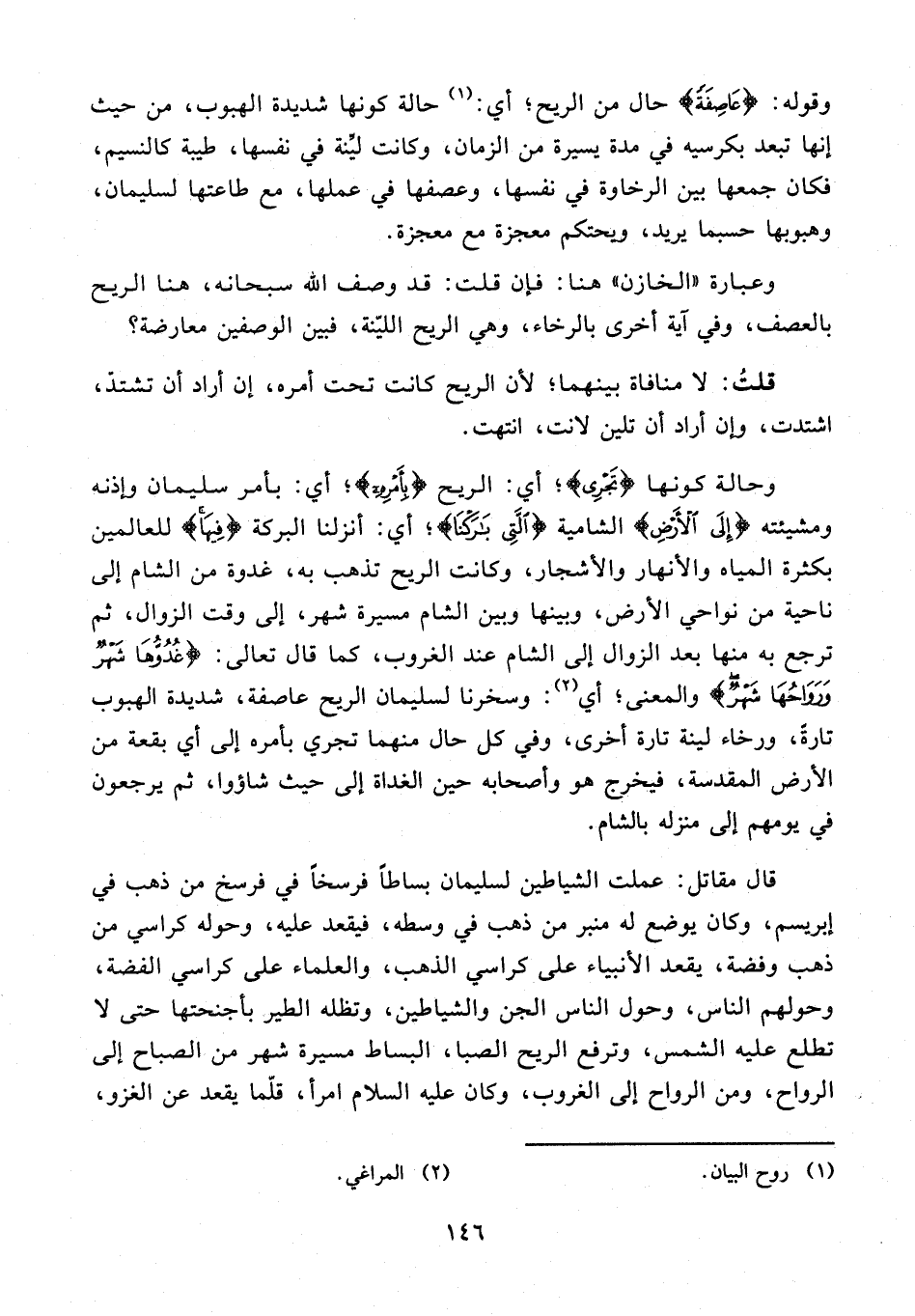 قلتُ: لا منافاة بينهما؛ لأن الريح كانت تحت أمره، إن أراد أن تشتدّ، اشتدت، وإن أراد أن تلين لانت، انتهت.
