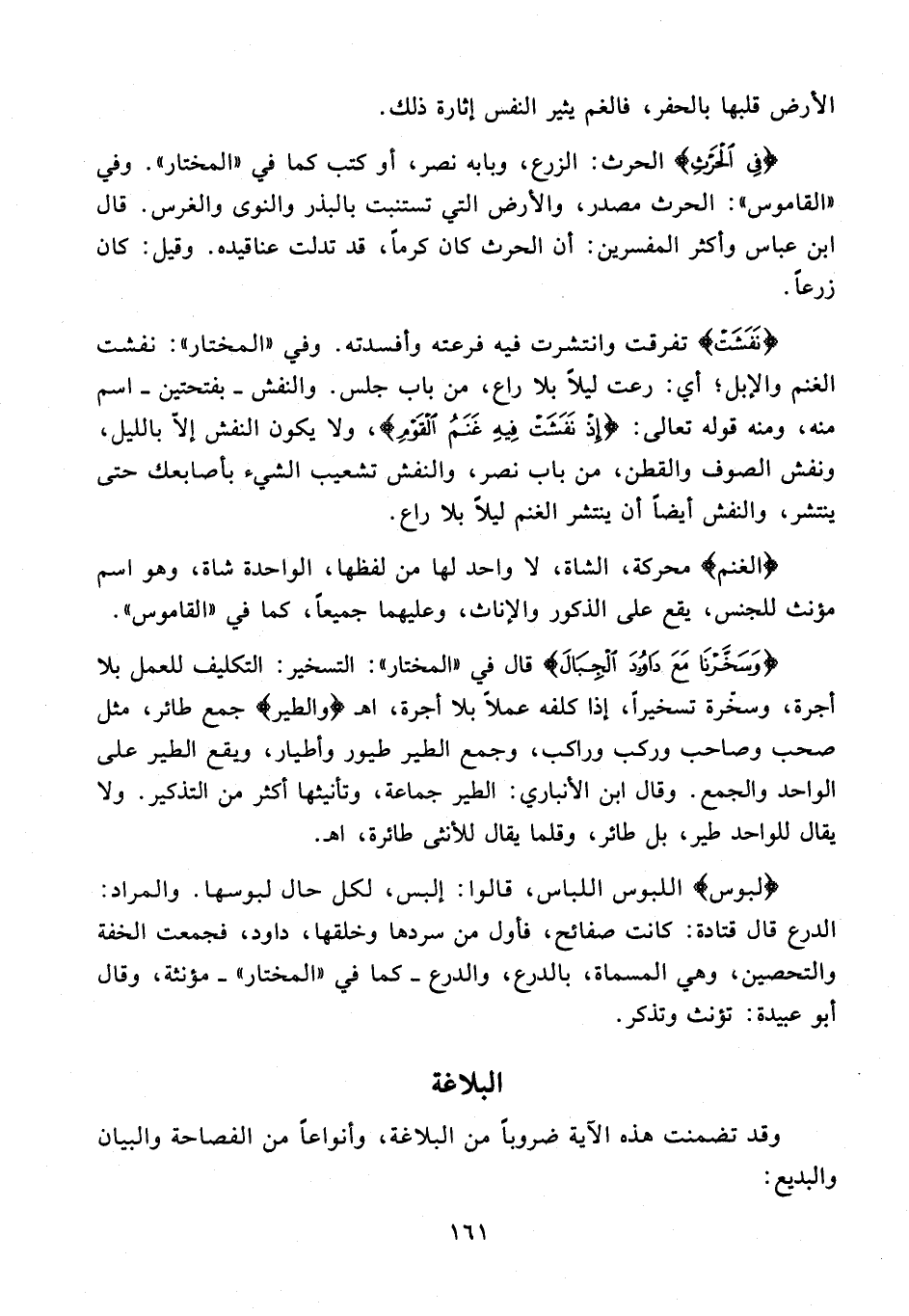 {نَفَشَتْ} تفرقت وانتشرت فيه فرعته وأفسدته. وفي "المختار": نفشت الغنم والإبل؛ أي: رعت ليلًا بلا راع، من باب جلس. والنفش - بفتحتين - اسم منه، ومنه قوله تعالى: {إِذْ نَفَشَتْ فِيهِ غَنَمُ الْقَوْمِ}، ولا يكون النفش إلّا بالليل، ونفش الصوف والقطن، من باب نصر، والنفش تشعيب الشيء بأصابعك حتى ينتشر، والنفش أيضًا أن ينتشر الغنم ليلًا بلا راع.