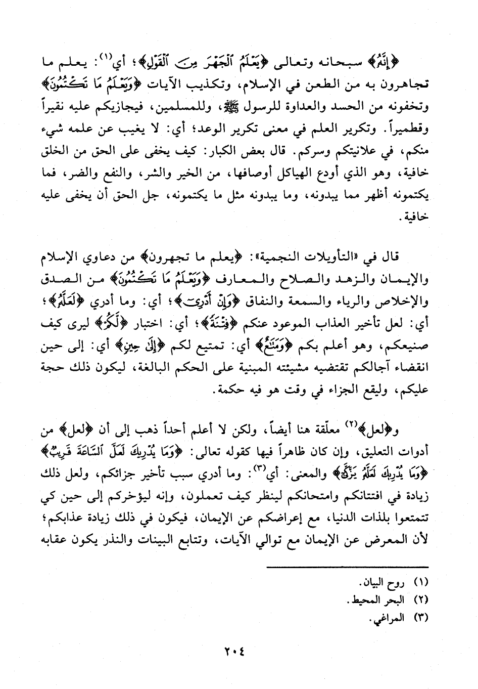 قال في "التأويلات النجمية": {يعلم ما تجهرون} من دعاوي الإسلام والإيمان والزهد والصلاح والمعارف {وَيَعْلَمُ مَا تَكْتُمُونَ} من الصدق والإخلاص والرياء والسمعة والنفاق