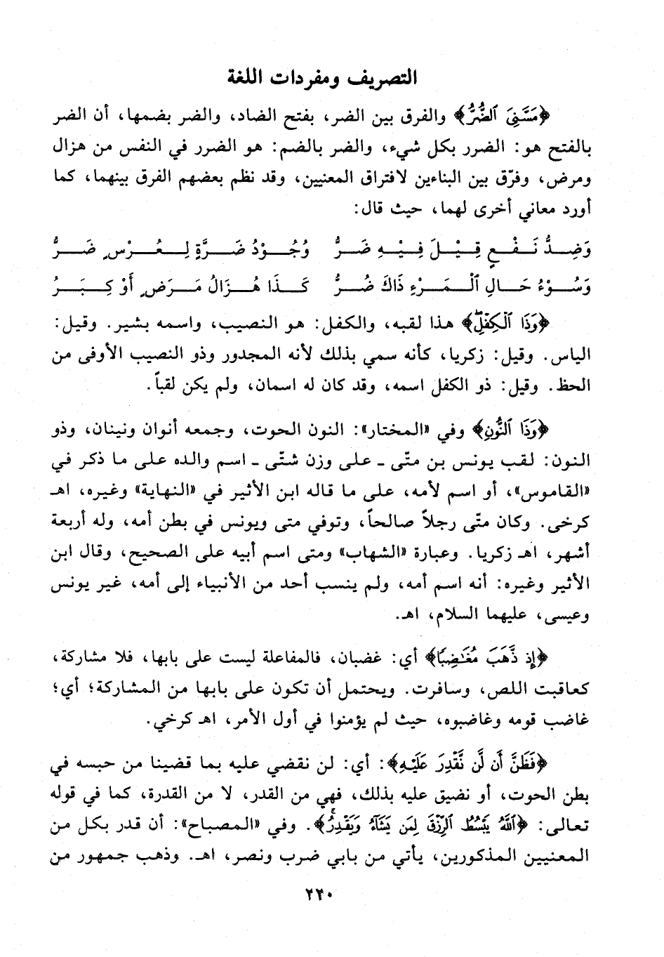 {مَسَّنِيَ الضُّرُّ} والفرق بين الضر، بفتح الضاد، والضر بضمها، أن الضر بالفتح هو: الضرر بكل شيء، والضر بالضم: هو الضرر في النفس من هزال ومرض، وفرّق بين البناءين لافتراق المعنيين، وقد نظم بعضهم الفرق بينهما، كما أورد معاني أخرى لهما، حيث قال: