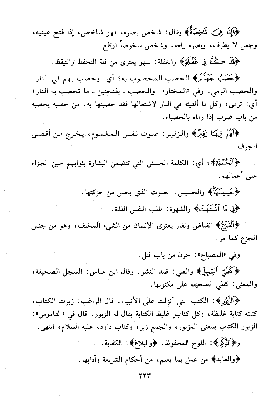 {حَصَبُ جَهَنَّمَ} الحصب المحصوب به؛ أي: يحصب بهم في النار. والحصب الرمي. وفي "المختار": والحصب - بفتحتين - ما تحصب به النار؛ أي: ترمى، وكل ما ألقيته في النار لاشتعالها فقد حصبتها به. من حصبه يحصبه من باب ضرب إذا رماه بالحصباء.
