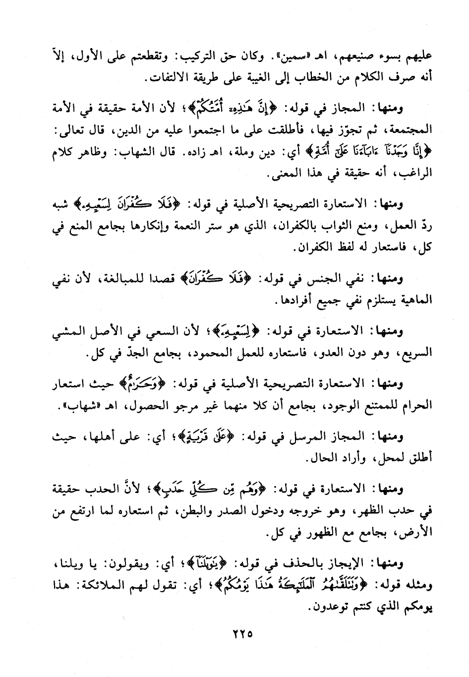 ومنها: الاستعارة التصريحية الأصلية في قوله: {فَلَا كُفْرَانَ لِسَعْيِهِ} شبه ردّ العمل، ومنع الثواب بالكفران، الذي هو ستر النعمة وإنكارها بجامع المنع في كل، فاستعار له لفظ الكفران.