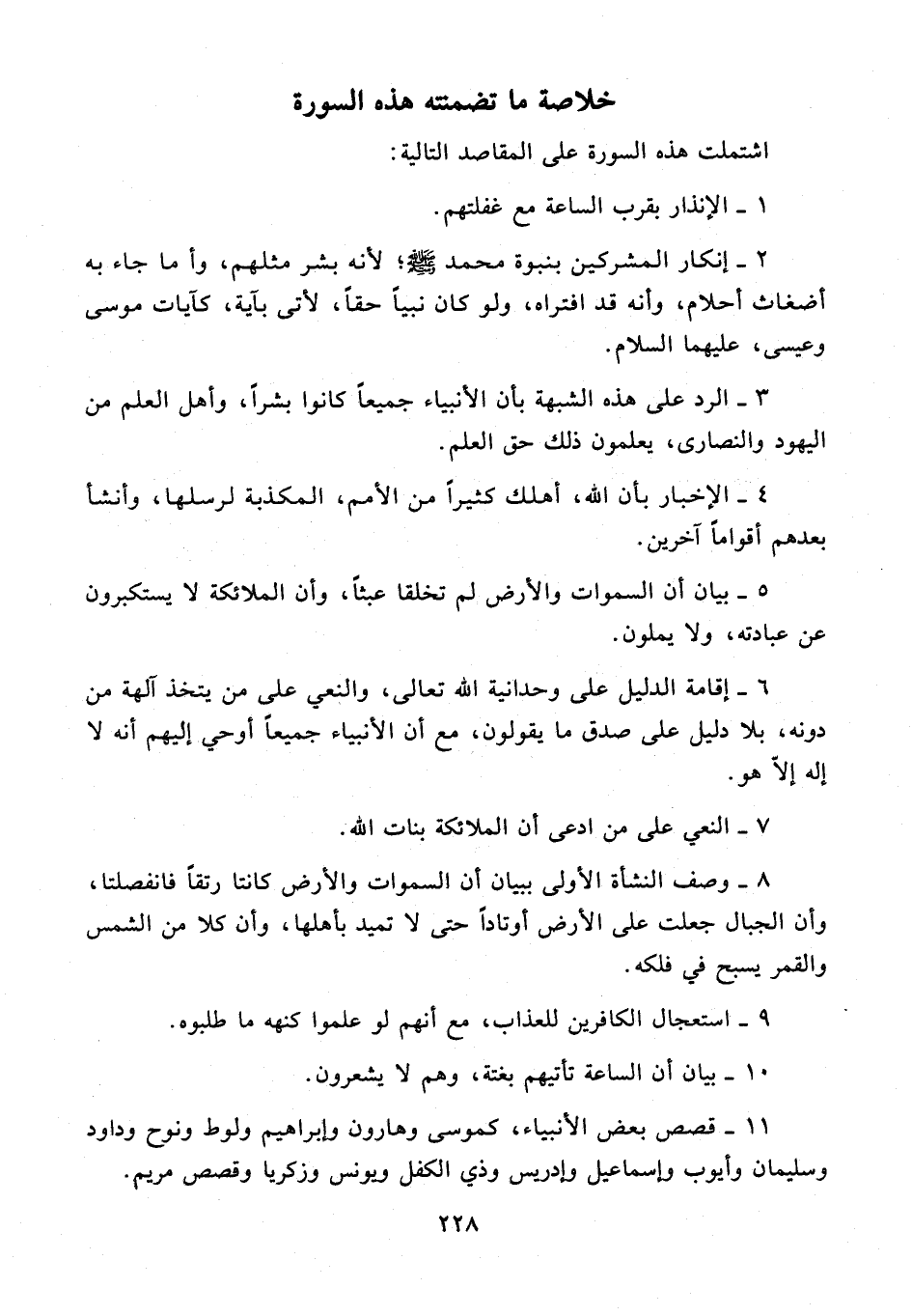11 - قصص بعض الأنبياء، موسى وهارون وإبراهيم ولوط ونوح وداود وسليمان وأيوب وإسماعيل وإدريس وذي الكفل ويونس وزكريا وقصص مريم.