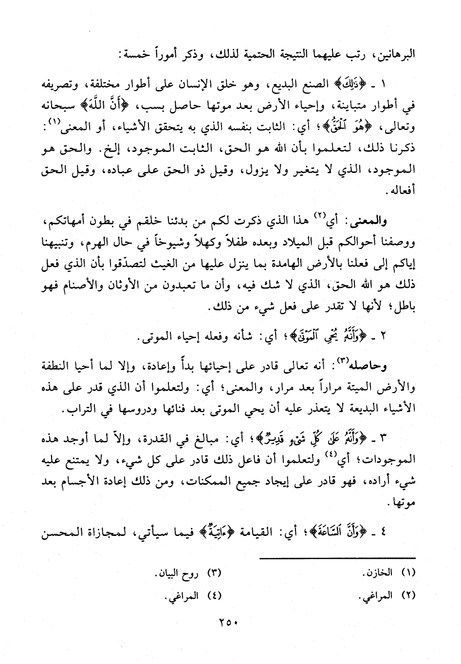 البرهانين، رتب عليهما النتيجة الحتمية لذلك، وذكر أمورًا خمسة: