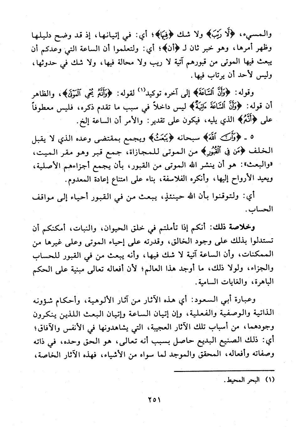 وعبارة أبي السعود: أي هذه الآثار من آثار الألوهية، وأحكام شؤونه الذاتية والوصفية والفعلية، وإن إتيان الساعة وإتيان البعث اللذين ينكرون وجودهما، من أسباب تلك الآثار العجيبة، التي يشاهدونها في الأنفس والآفاق؛ أي: ذلك الصنيع البديع حاصل بسبب أنه تعالى، هو الحق وحده، في ذاته وصفاته وأفعاله، المحقق والموجد لما سواه من الأشياء، فهذه الآثار الخاصة،