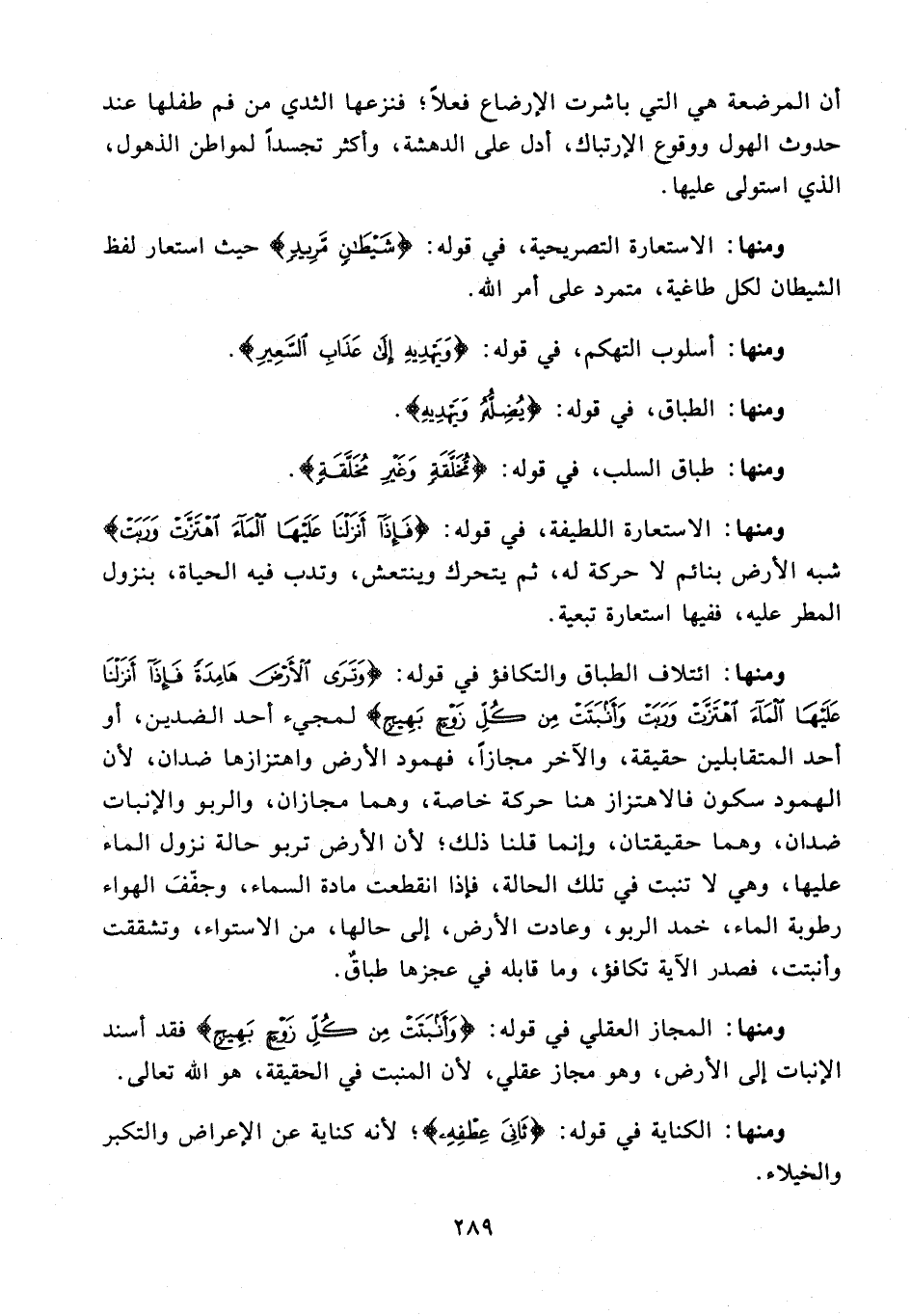 ومنها: الاستعارة اللطيفة، في قوله: {فَإِذَا أَنْزَلْنَا عَلَيْهَا الْمَاءَ اهْتَزَّتْ وَرَبَتْ} شبه الأرض بنائم لا حركة له، ثم يتحرك وينتعش، وتدب فيه الحياة، بنزول المطر عليه، ففيها استعارة تبعية.