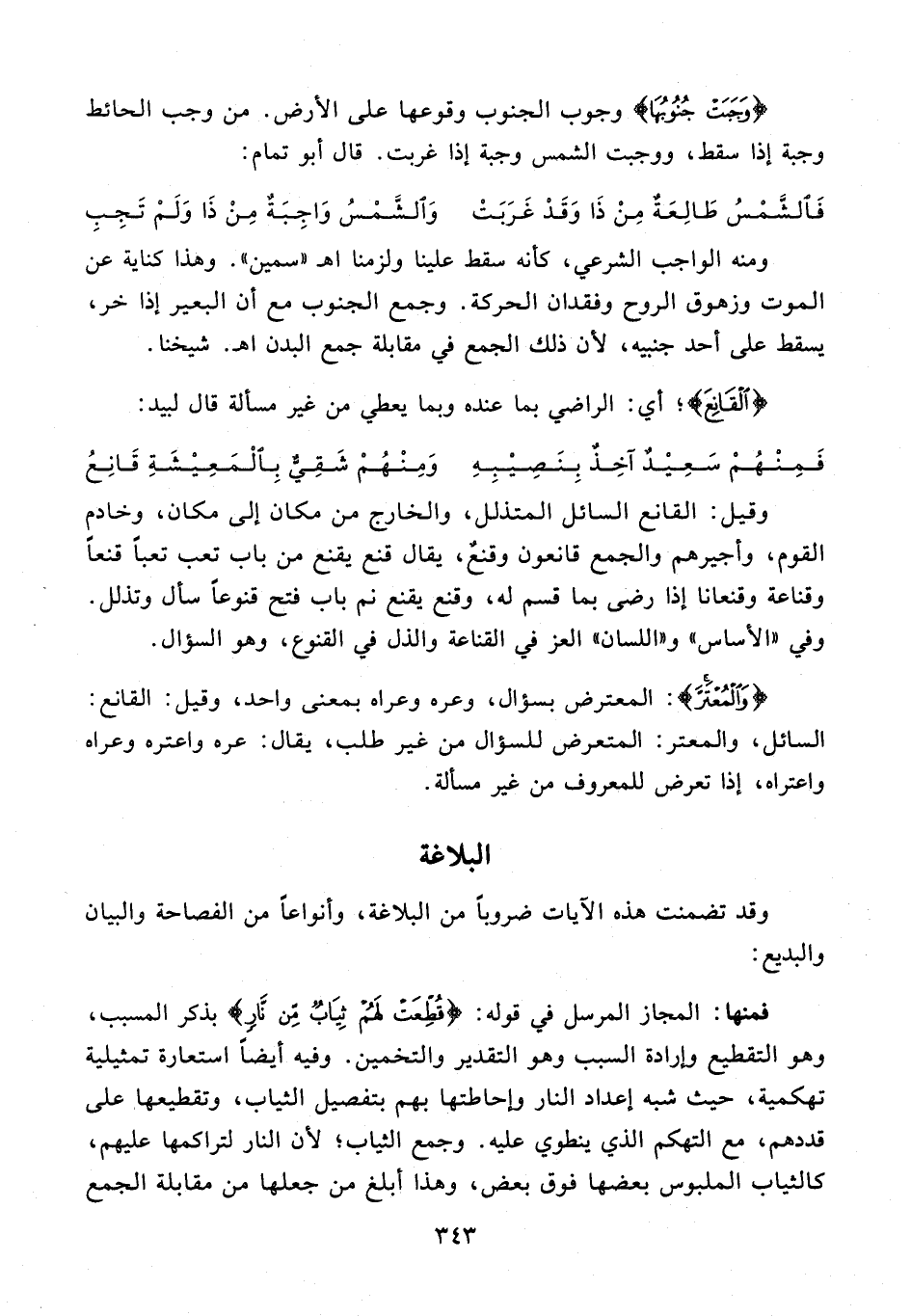 {وَالْمُعْتَرَّ}: المعترض بسؤال، وعره وعراه بمعنى واحد، وقيل: القانع: السائل، والمعتر: المتعرض للسؤال من غير طلب، يقال: عره واعتره وعراه واعتراه، إذا تعرض للمعروف من غير مسألة.