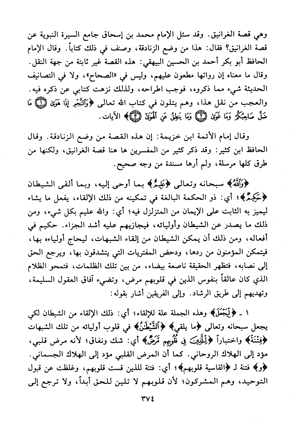 وقال إمام الأئمة ابن خزيمة: إن هذه القصة من وضع الزنادقة. وقال الحافظ ابن كثير: وقد ذكر كثير من المفسرين هاهنا قصة الغرانيق، ولكنها من طرق كلها مرسلة، ولم أرها مسندة من وجه صحيح.