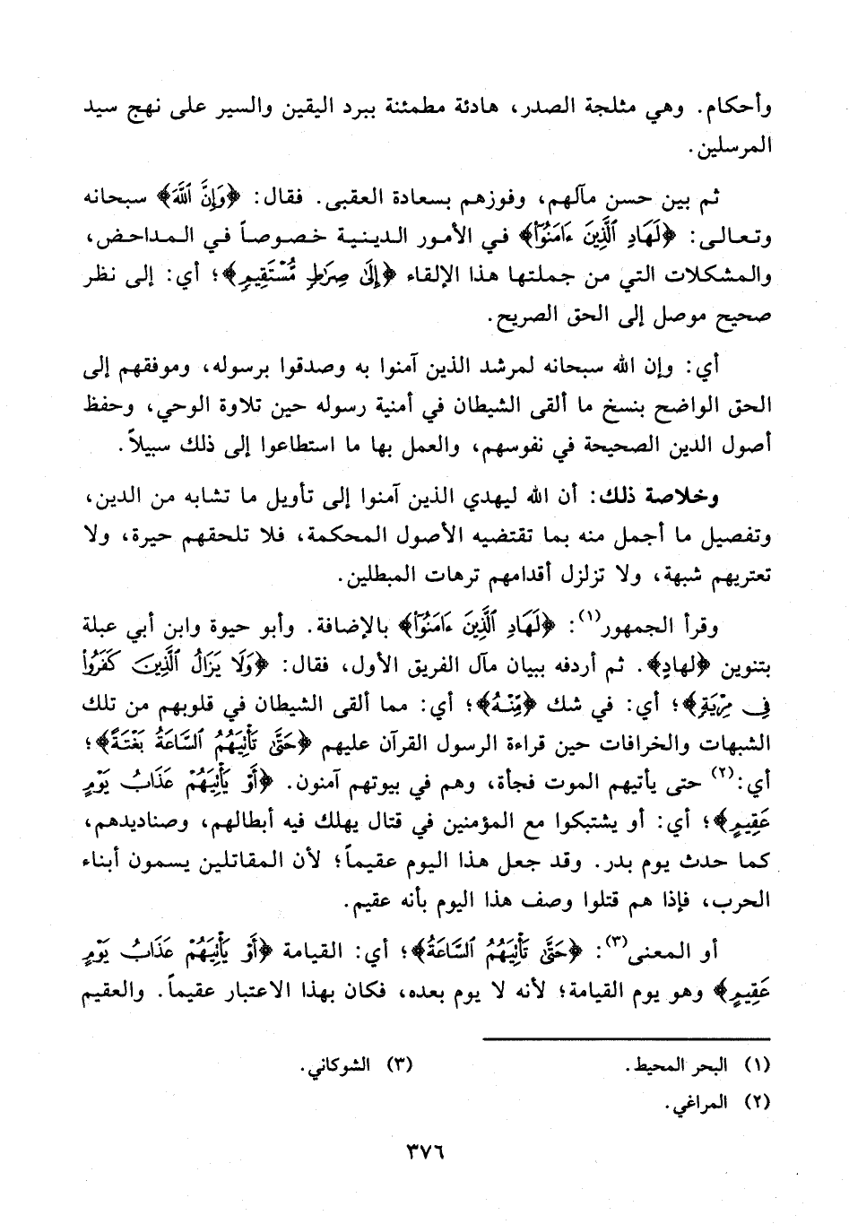 وخلاصة ذلك: أن الله ليهدي الذين آمنوا إلى تأويل ما تشابه من الدين، وتفصيل ما أجمل منه بما تقتضيه الأصول المحكمة، فلا تلحقهم حيرة، ولا تعتريهم شبهة، ولا تزلزل أقدامهم ترهات المبطلين.