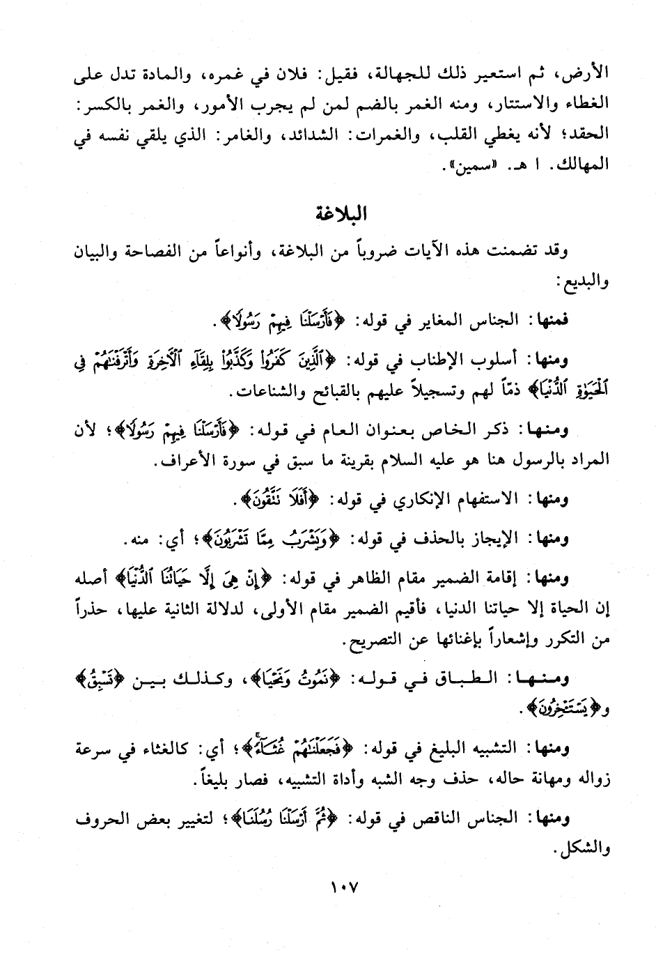 ومنها: التشبيه البليغ في قوله: {فَجَعَلْنَاهُمْ غُثَاءً}؛ أي: كالغثاء في سرعة زواله ومهانة حاله، حذف وجه الشبه وأداة التشبيه، فصار بليغًا.
