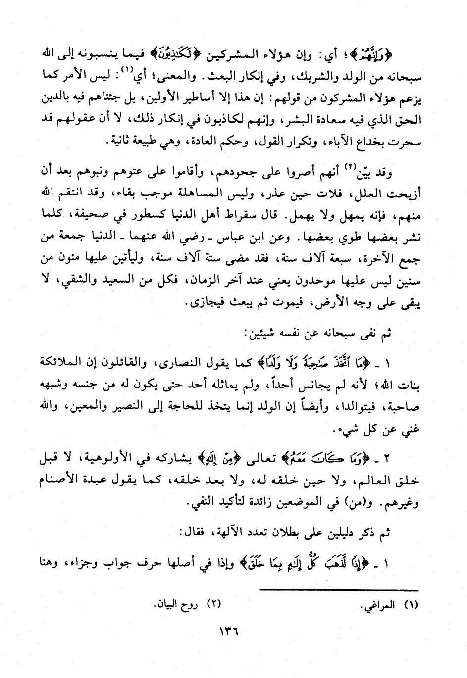 ثم ذكر دليلين على بطلان تعدد الآلهة، فقال: