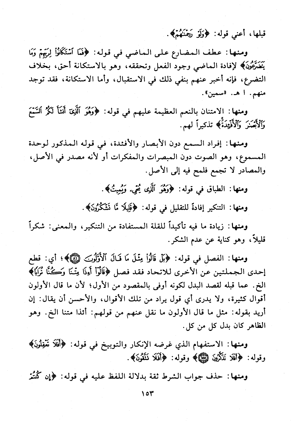 ومنها: التنكير إفادةً للتقليل في قوله: {قَلِيلًا مَا تَشْكُرُونَ}.