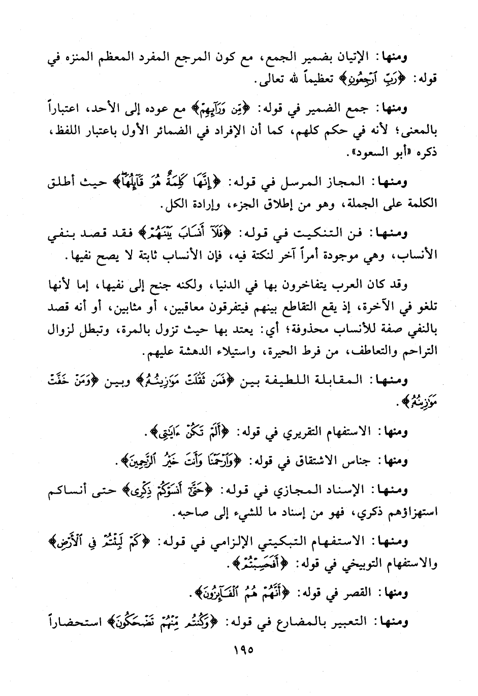 ومنها: الإتيان بضمير الجمع، مع كون المرجع المفرد المعظم المنزه فى قوله: {رَبِّ ارْجِعُونِ} تعظيمًا لله تعالى.