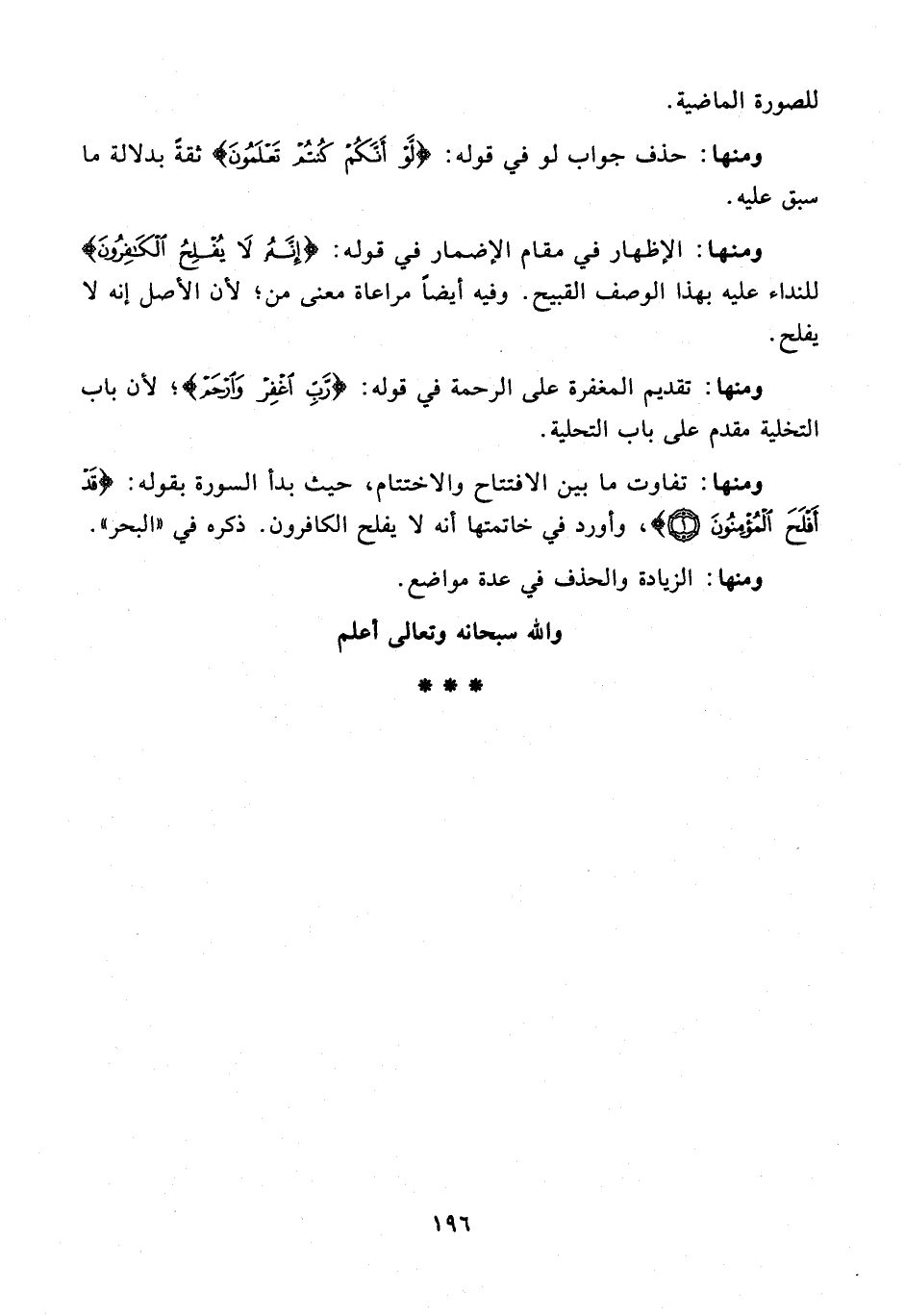 ومنها: تفاوت ما بين الافتتاح والاختتام، حيث بدأ السورة بقوله: {قَدْ أَفْلَحَ الْمُؤْمِنُونَ (1)}، وأورد فى خاتمتها أنه لا يفلح الكافرون. ذكره فى "البحر".