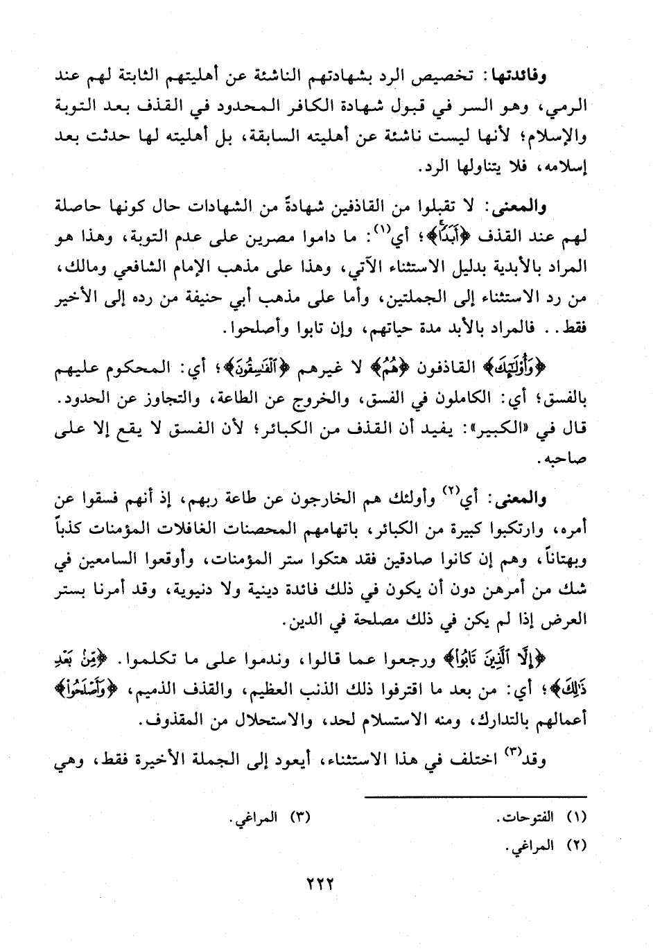 وفائدتها: تخصيص الرد بشهادتهم الناشئة عن أهليتهم الثابتة لهم عند الرمي، وهو السر في قبول شهادة الكافر المحدود في القذف بعد التوبة والإِسلام؛ لأنها ليست ناشئة عن أهليته السابقة، بل أهليته لها حدثت بعد إسلامه، فلا يتناولها الرد.