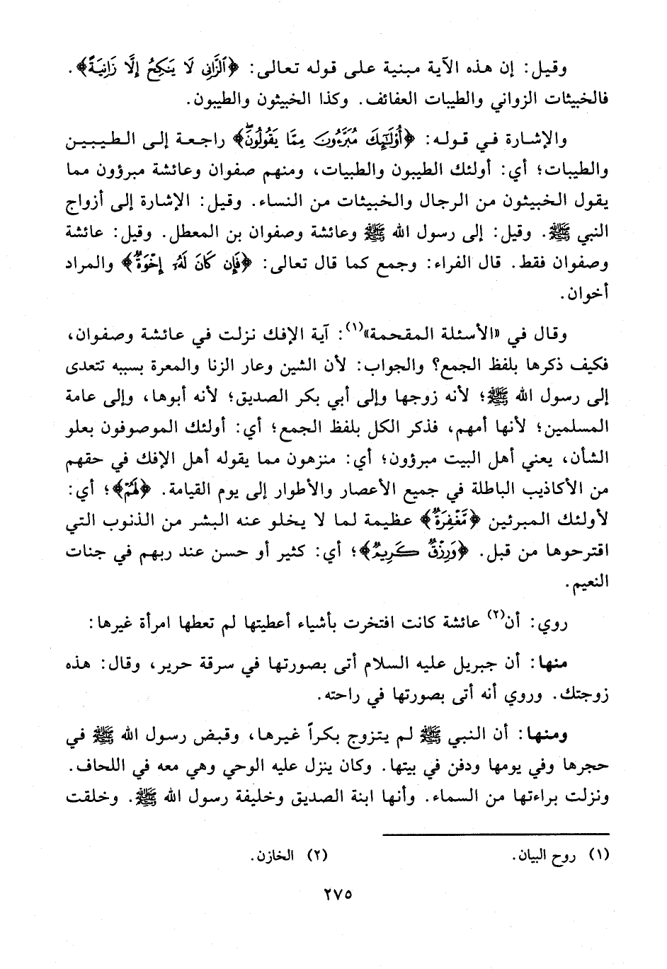 والإشارة في قوله: {أُولَئِكَ مُبَرَّءُونَ مِمَّا يَقُولُونَ} راجعة إلى الطيبين والطيبات؛ أي: أولئك الطيبون والطبيات، ومنهم صفوان وعائشة مبرؤون مما يقول الخبيثون من الرجال والخبيثات من النساء. وقيل: الإشارة إلى أزواج النبي - صلى الله عليه وسلم - وقيل: إلى رسول الله - صلى الله عليه وسلم - وعائشة وصفوان بن المعطل. وقيل: عائشة وصفوان فقط. قال الفراء: وجمع كما قال تعالى: {فَإِنْ كَانَ لَهُ إِخْوَةٌ} والمراد أخوان.