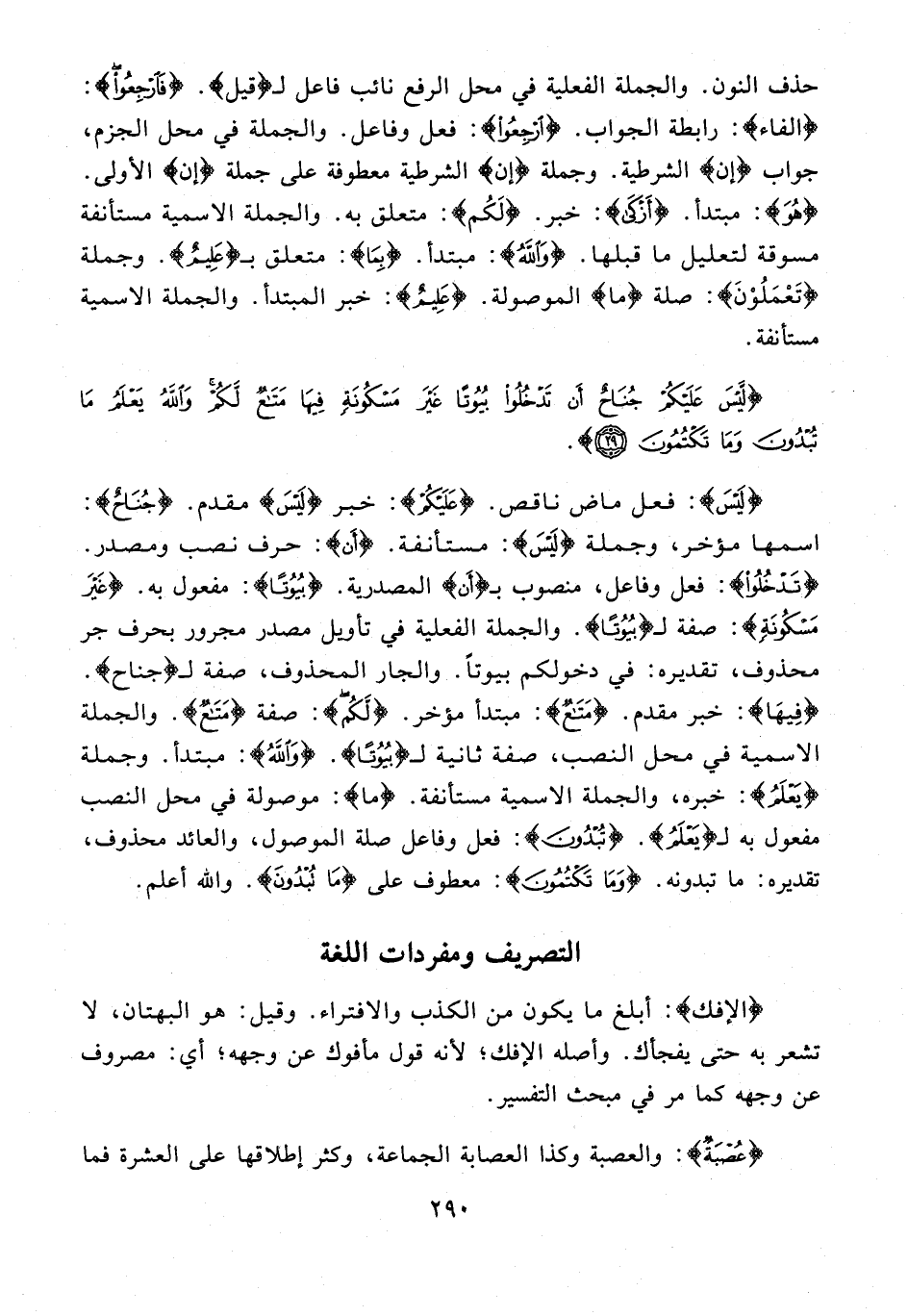 {لَيْسَ}: فعل ماض ناقص. {عَلَيْكُمْ}: خبر {لَيْسَ} مقدم. {جُنَاحٌ}: اسمها مؤخر، وجملة {لَيْسَ}: مستأنفة. {أَنْ}: حرف نصب ومصدر. {تَدْخُلُوا}: فعل وفاعل، منصوب بـ {أَنْ} المصدرية. {بُيُوتًا}: مفعول به. {غَيْرَ مَسْكُونَةٍ}: صفة لـ {بُيُوتًا}. والجملة الفعلية في تأويل مصدر مجرور بحرف جر محذوف، تقديره: في دخولكم بيوتًا. والجار المحذوف، صفة لـ {جناح}. {فِيهَا}: خبر مقدم. {مَتَاعٌ}: مبتدأ مؤخر. {لَكُمْ}: صفة {مَتَاعٌ}. والجملة الاسمية في محل النصب، صفة ثانية لـ {بُيُوتًا}. {وَاللَّهُ}: مبتدأ. وجملة {يَعْلَمُ}: خبره، والجملة الاسمية مستأنفة. {ما}: موصولة في محل النصب مفعول به لـ {يَعْلَمُ}. {تُبْدُونَ}: فعل وفاعل صلة الموصول، والعائد محذوف، تقديره: ما تبدونه. {وَمَا تَكْتُمُونَ}: معطوف على {مَا تُبْدُونَ}. والله أعلم.