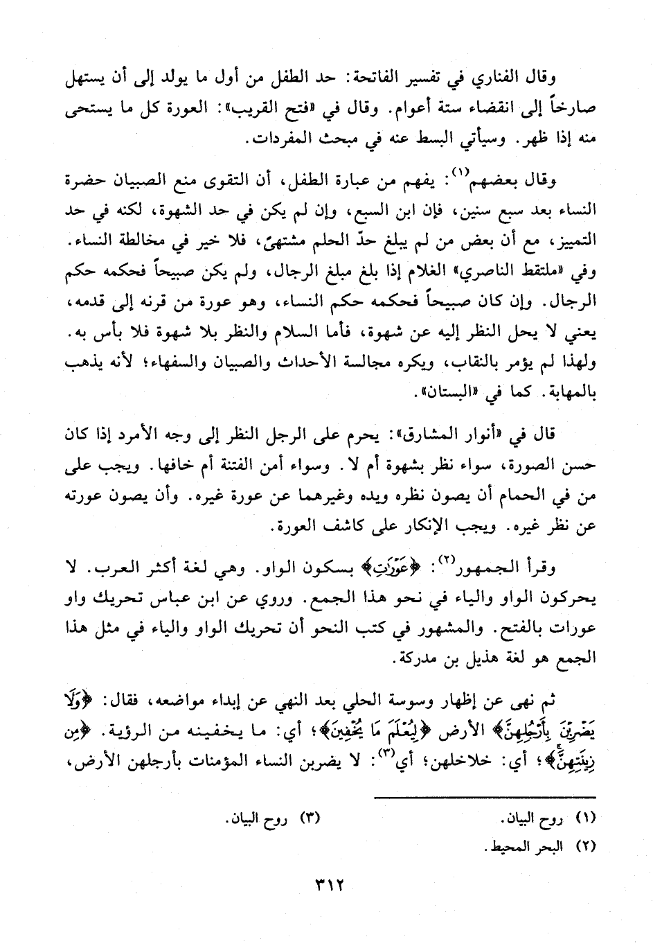 وقال الفناري في تفسير الفاتحة: حد الطفل من أول ما يولد إلى أن يستهل صارخًا إلى انقضاء ستة أعوام. وقال في "فتح القريب": العورة كل ما يستحى منه إذا ظهر. وسيأتي البسط عنه في مبحث المفردات.