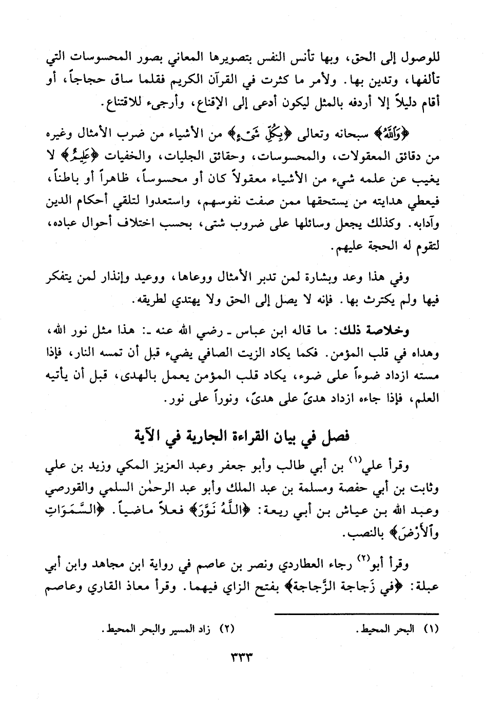 للوصول إلى الحق، وبها تأنس النفس بتصويرها المعاني بصور المحسوسات التي تألفها، وتدين بها. ولأمر ما كثرت في القرآن الكريم فقلما ساق حجاجًا، أو أقام دليلًا إلا أردفه بالمثل ليكون أدعى إلى الإقناع، وأرجىء للاقتناع.