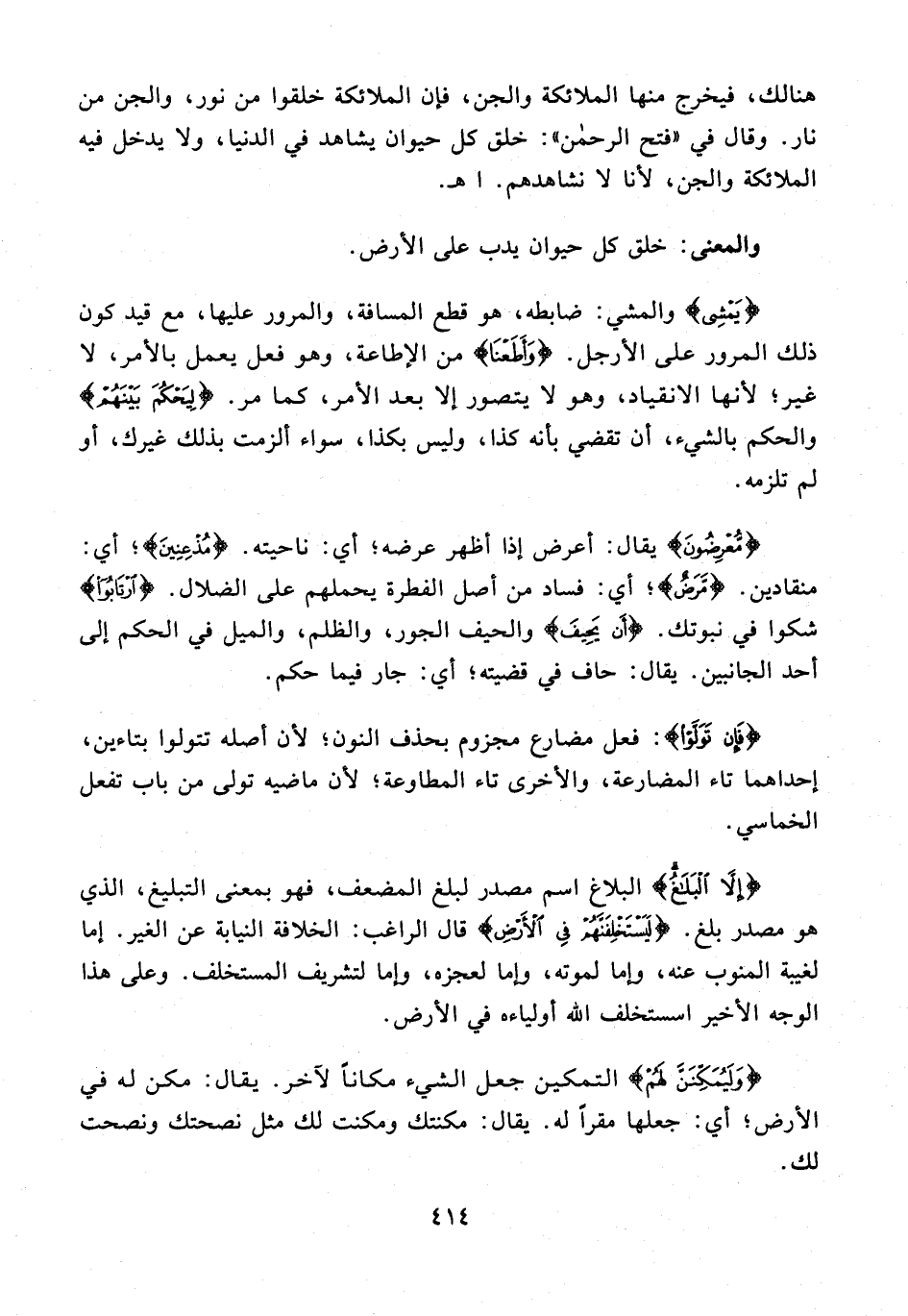 {إِلَّا الْبَلَاغُ} البلاغ اسم مصدر لبلغ المضعف، فهو بمعنى التبليغ، الذي هو مصدر بلغ. {لَيَسْتَخْلِفَنَّهُمْ فِي الْأَرْضِ} قال الراغب: الخلافة النيابة عن الغير. إما لغيبة المنوب عنه، وإما لموته، وإما لعجزه، وإما لتشريف المستخلف. وعلى هذا الوجه الأخير استخلف الله أولياءه في الأرض.