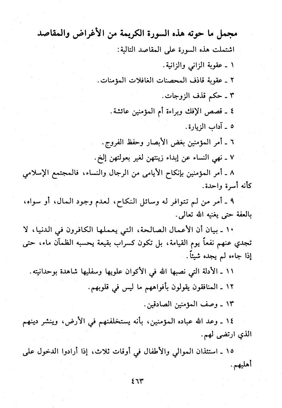 اشتملت هذه السورة على المقاصد التالية: