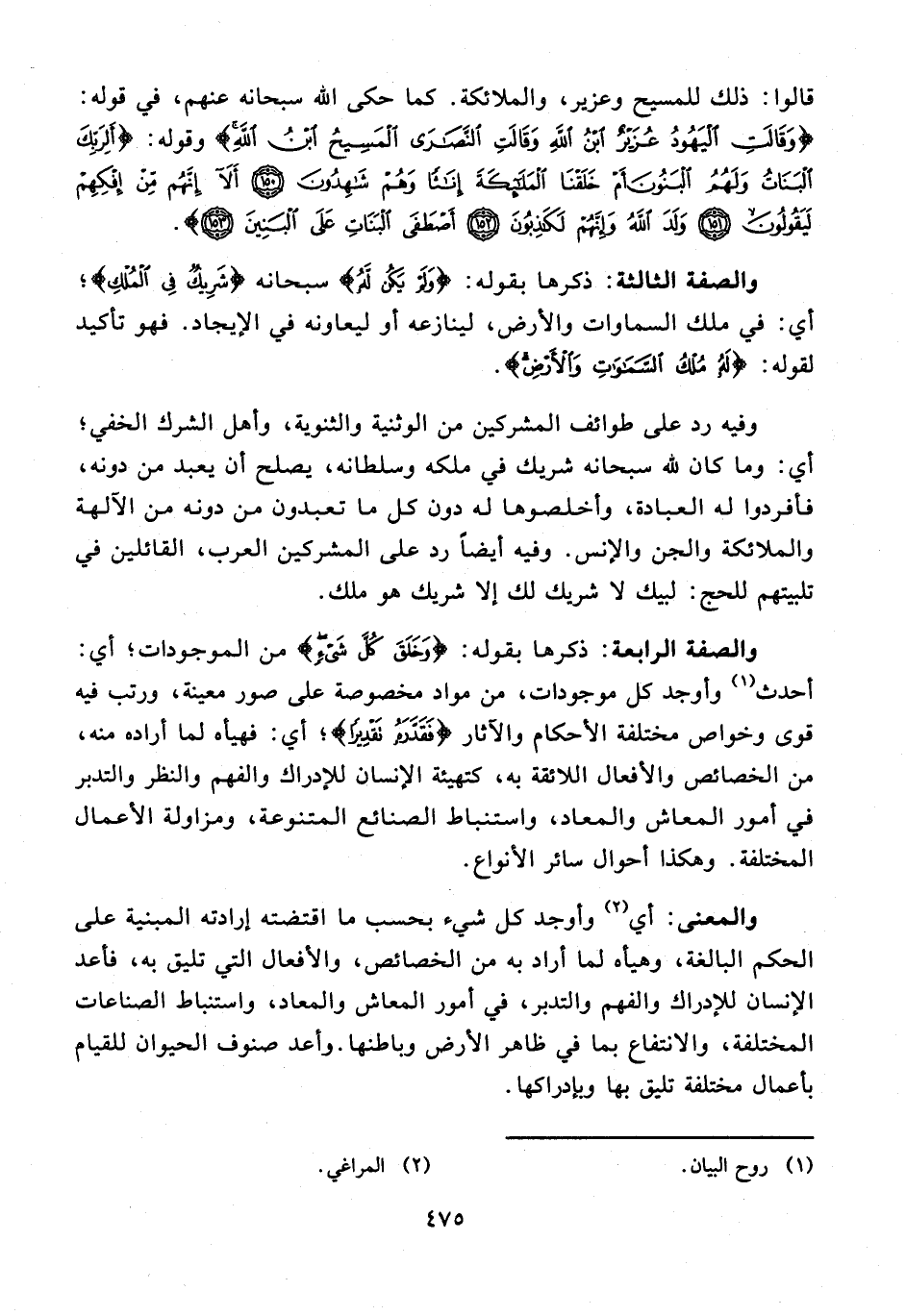 والصفة الثالثة: ذكرها بقوله: {وَلَمْ يَكُنْ لَهُ} سبحانه {شَرِيكٌ فِي الْمُلْكِ}؛ أي: في ملك السماوات والأرض، لينازعه أو ليعاونه في الإيجاد. فهو تأكيد لقوله: {لَهُ مُلْكُ السَّمَاوَاتِ وَالْأَرْضِ}.
