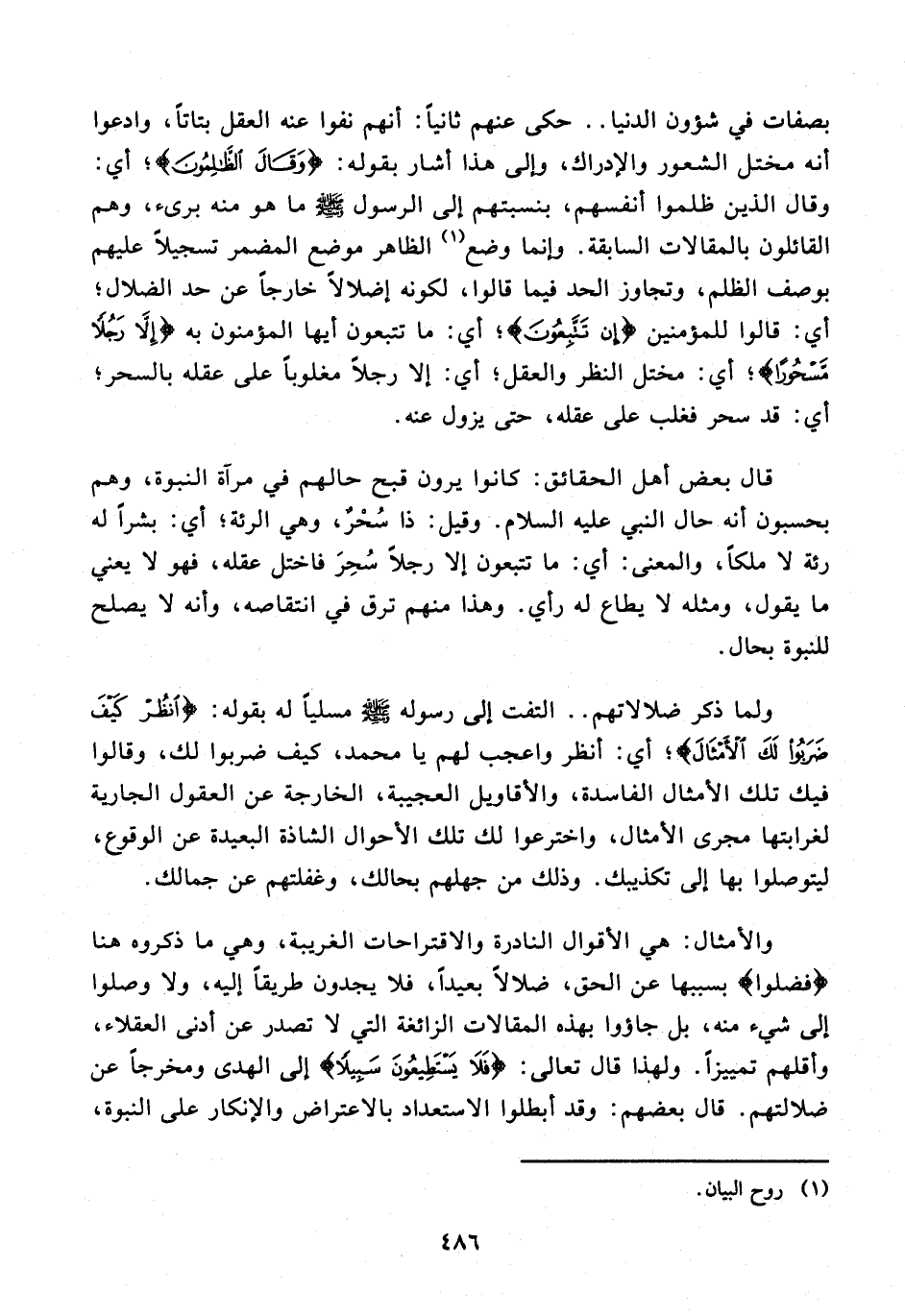 9 - ولما ذكر ضلالاتهم .. التفت إلى رسوله - صلى الله عليه وسلم - مسليًا له بقوله: {انْظُرْ كَيْفَ ضَرَبُوا لَكَ الْأَمْثَالَ}؛ أي: أنظر واعجب لهم يا محمد، كيف ضربوا لك، وقالوا فيك تلك الأمثال الفاسدة، والأقاويل العجيبة، الخارجة عن العقول الجارية لغرابتها مجرى الأمثال، واخترعوا لك تلك الأحوال الشاذة البعيدة عن الوقوع، ليتوصلوا بها إلى تكذيبك. وذلك من جهلهم بحالك، وغفلتهم عن جمالك.