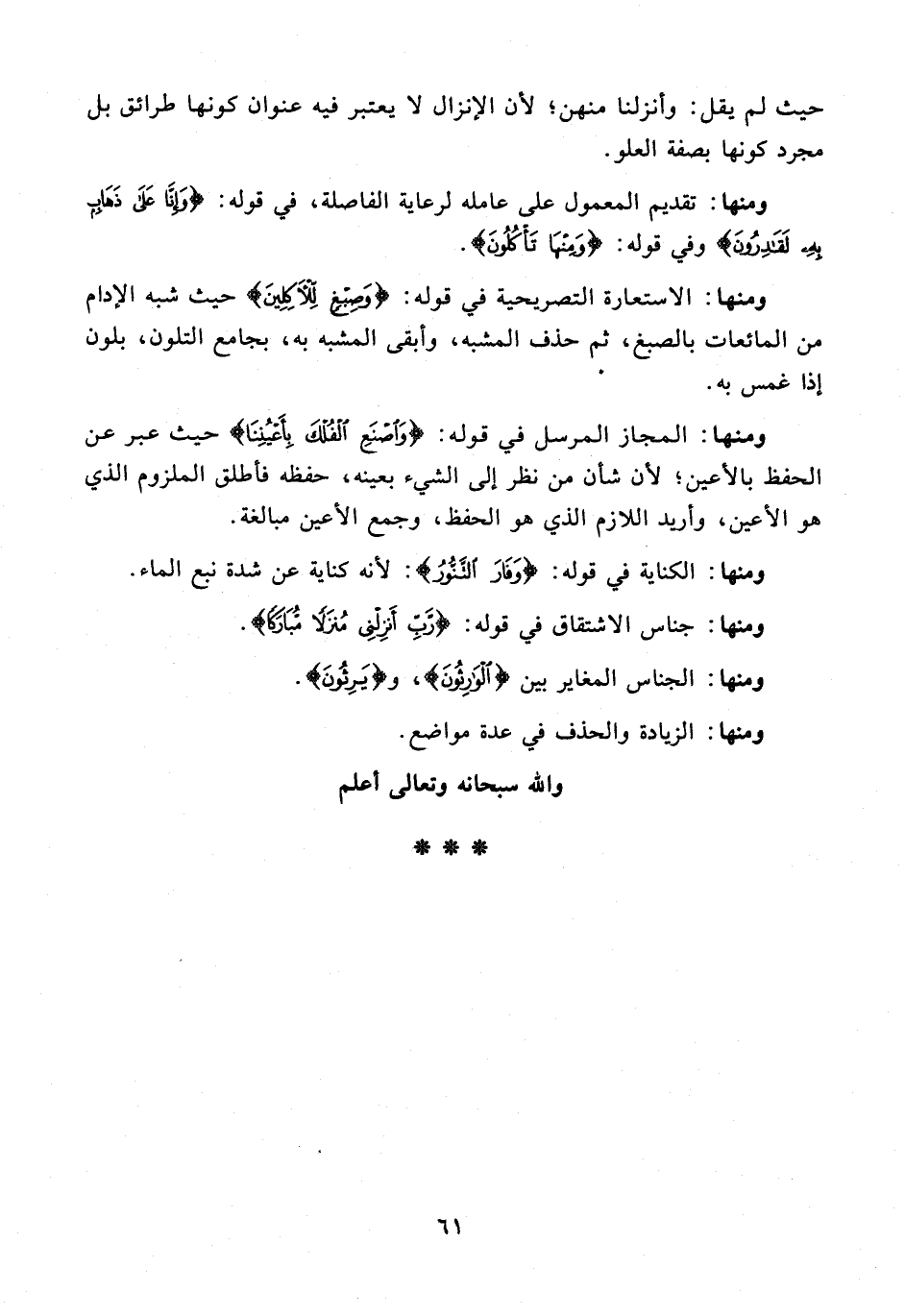 ومنها: تقديم المعمول على عامله لرعاية الفاصلة، في قوله: {وَإِنَّا عَلَى ذَهَابٍ بِهِ لَقَادِرُونَ} وفي قوله: {وَمِنْهَا تَأْكُلُونَ}.