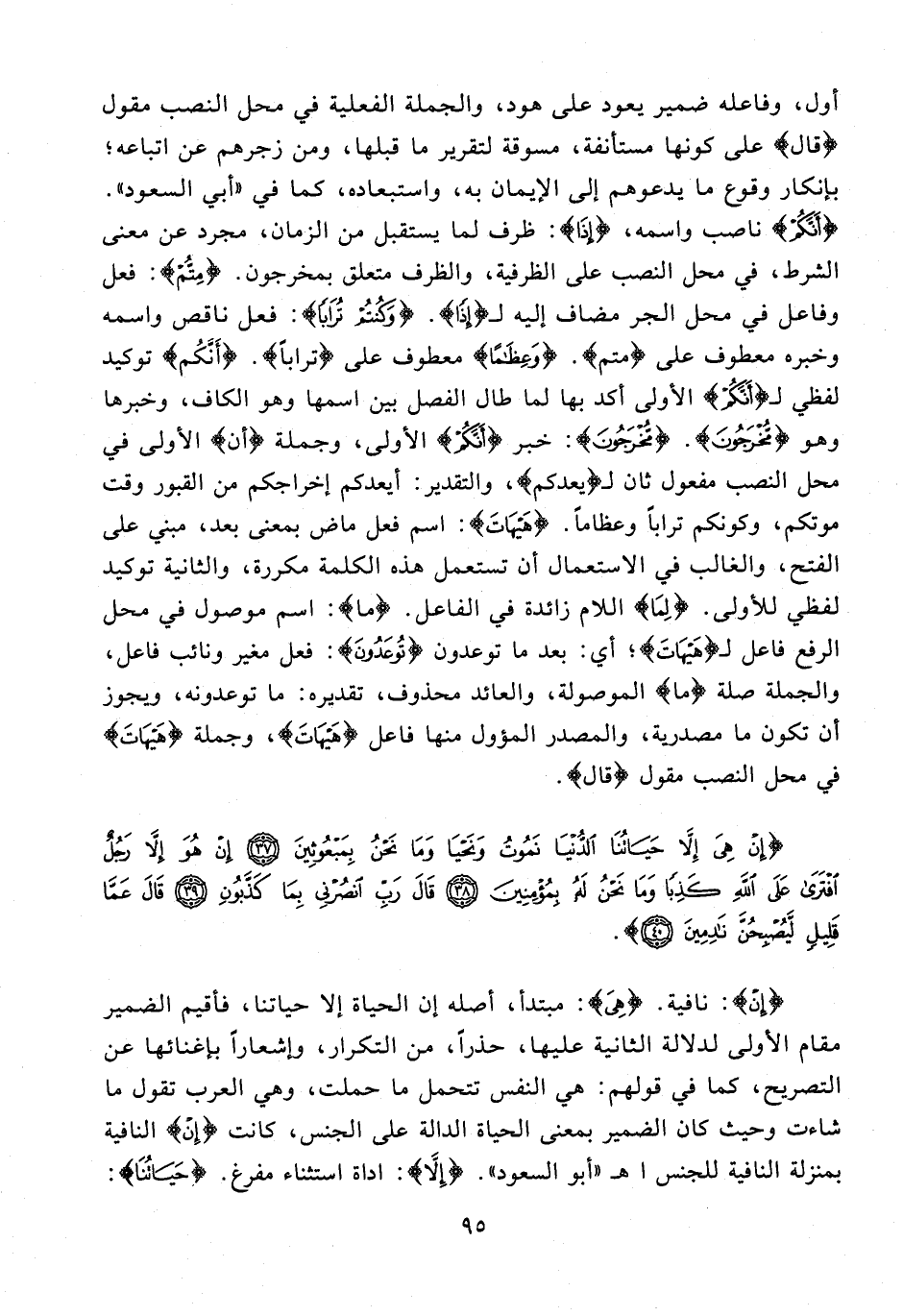 {إِنْ هِيَ إِلَّا حَيَاتُنَا الدُّنْيَا نَمُوتُ وَنَحْيَا وَمَا نَحْنُ بِمَبْعُوثِينَ (37) إِنْ هُوَ إِلَّا رَجُلٌ افْتَرَى عَلَى اللَّهِ كَذِبًا وَمَا نَحْنُ لَهُ بِمُؤْمِنِينَ (38) قَالَ رَبِّ انْصُرْنِي بِمَا كَذَّبُونِ (39) قَالَ عَمَّا قَلِيلٍ لَيُصْبِحُنَّ نَادِمِينَ (40)}.
