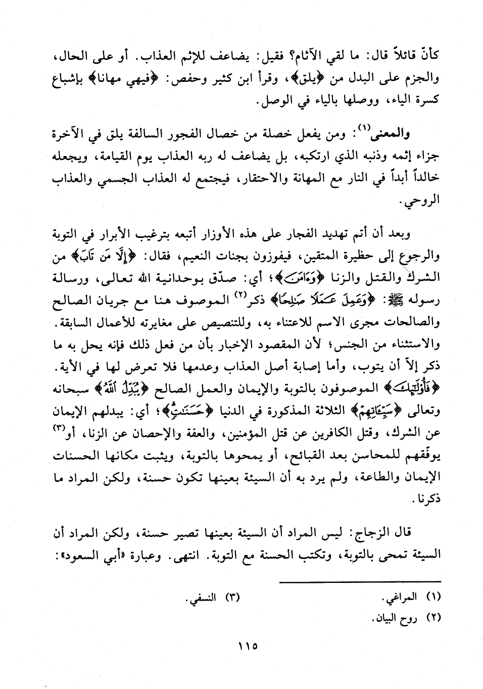 قال الزجاج: ليس المراد أن السيئة بعينها تصير حسنة، ولكن المراد أن السيئة تمحى بالتوبة، وتكتب الحسنة مع التوبة. انتهى. وعبارة "أبي السعود":