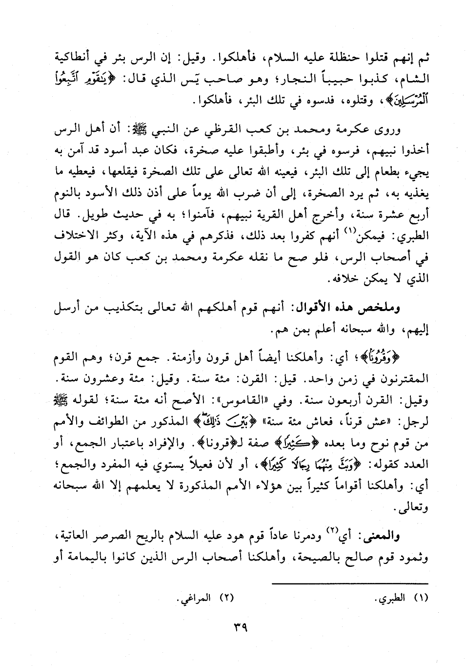 والمعنى: أي (¬2) ودمرنا عادًا قوم هود عليه السلام بالريح الصرصر العاتية، وثمود قوم صالح بالصيحة، وأهلكنا أصحاب الرس الذين كانوا باليمامة أو